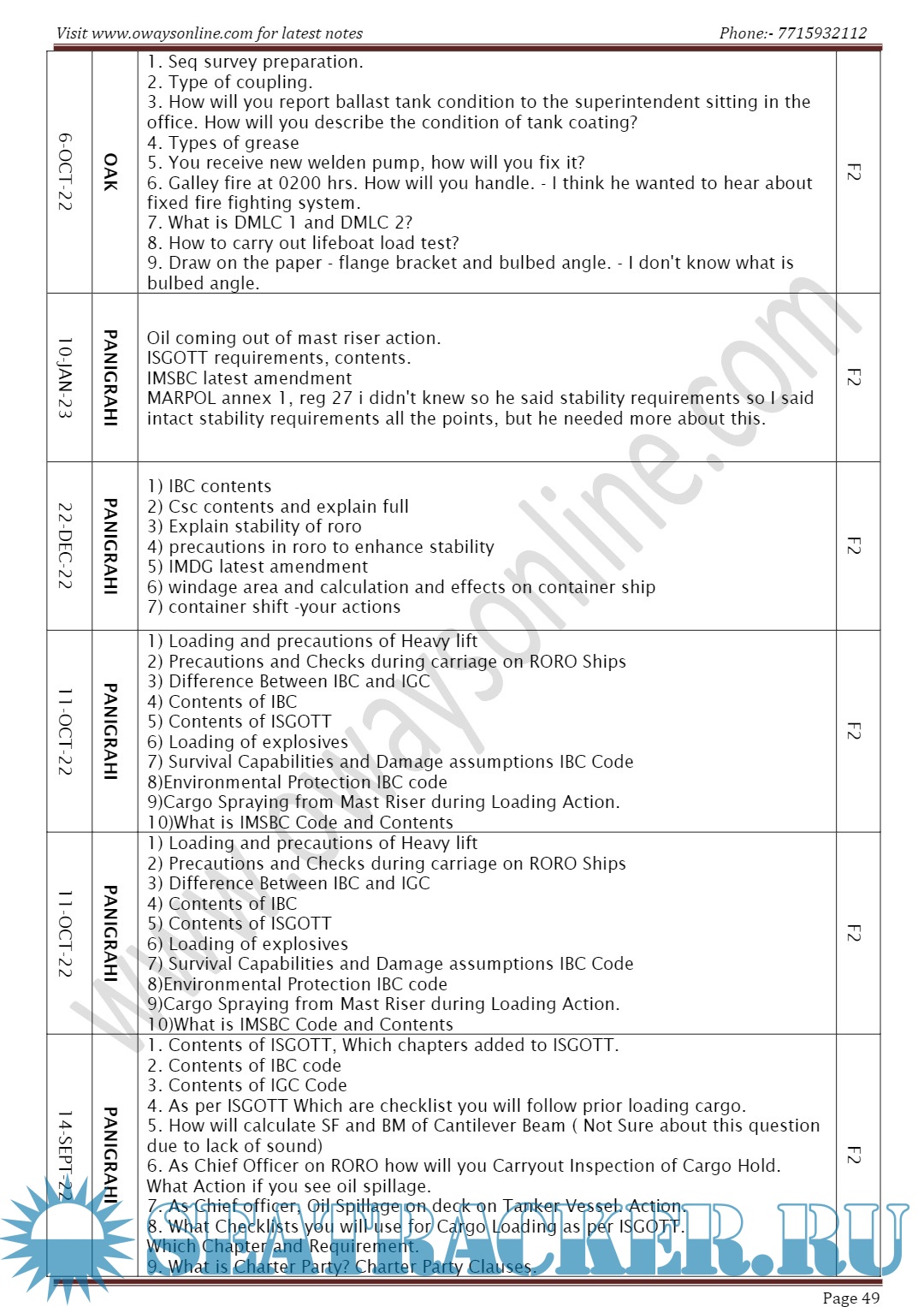 Orals Question Bank (May 2023) for Chief Mate F.G. Mercantile Marine Department (MMD), India Examinations