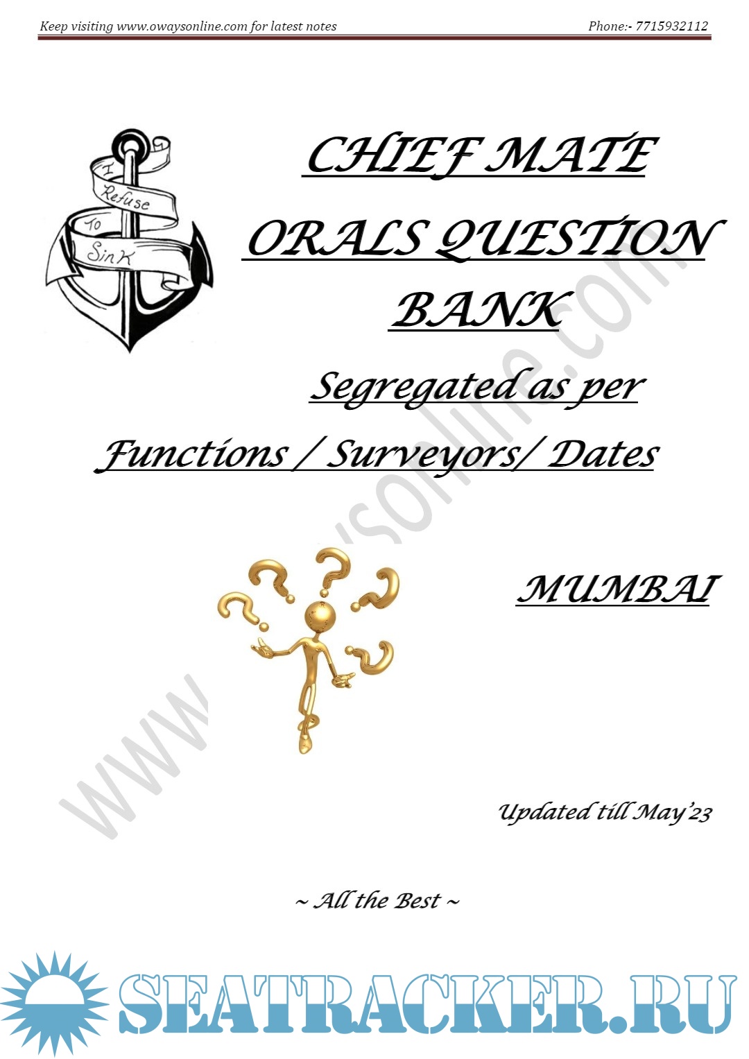 Description: Orals Question Bank for Chief Mate F.G. Mercantile Marine Department (MMD), India Examinations.