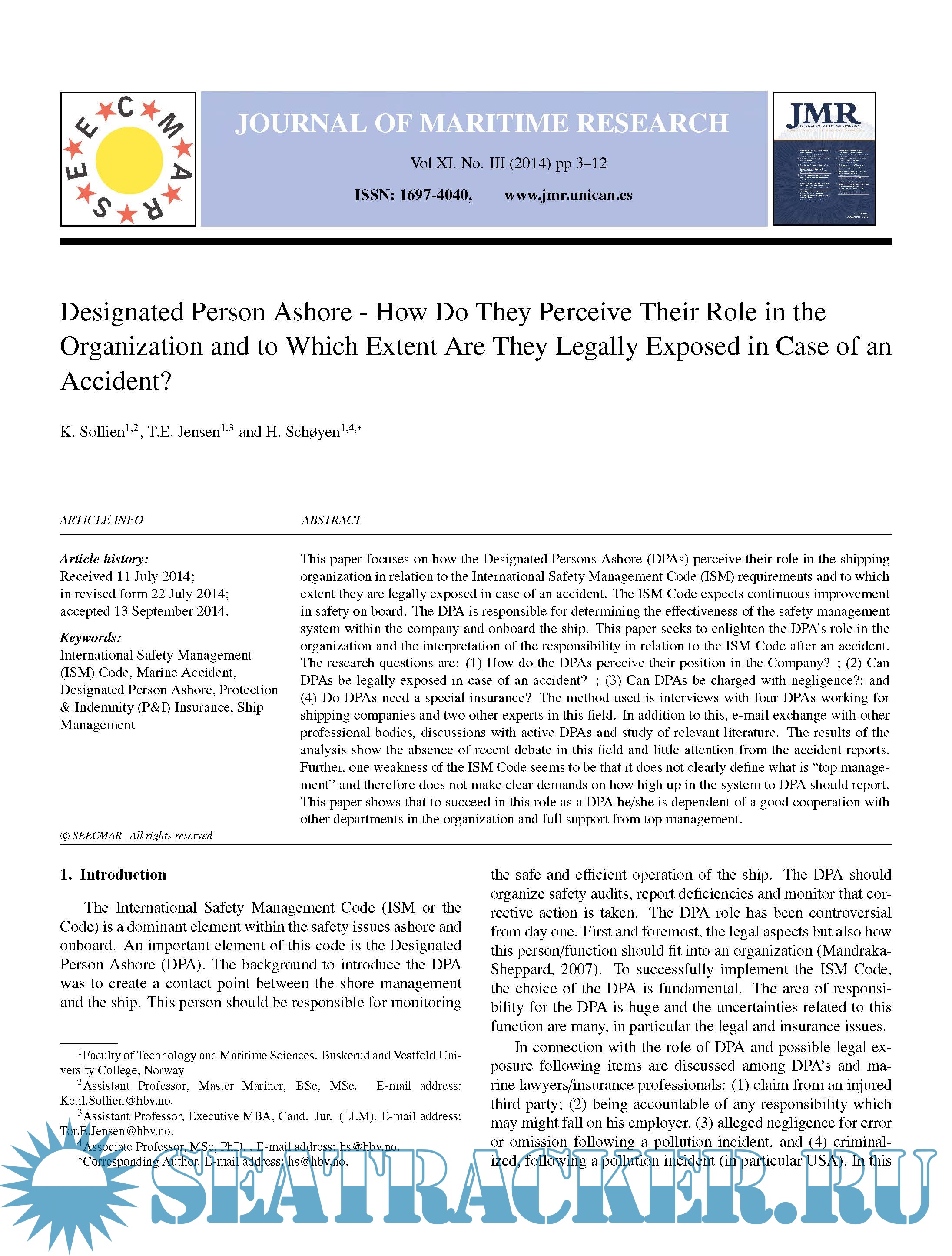 Description: This paper focuses on how the Designated Persons Ashore (DPAs) perceive their role in the shipping
