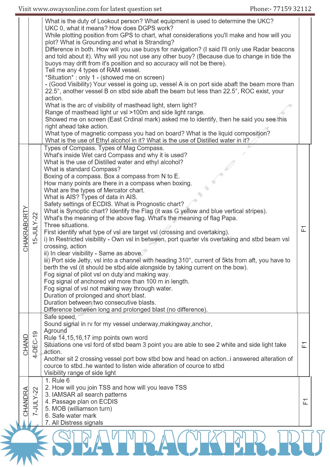 Orals Question Bank (July 2023) for Second Mates / Mercantile Marine Department (MMD), India…