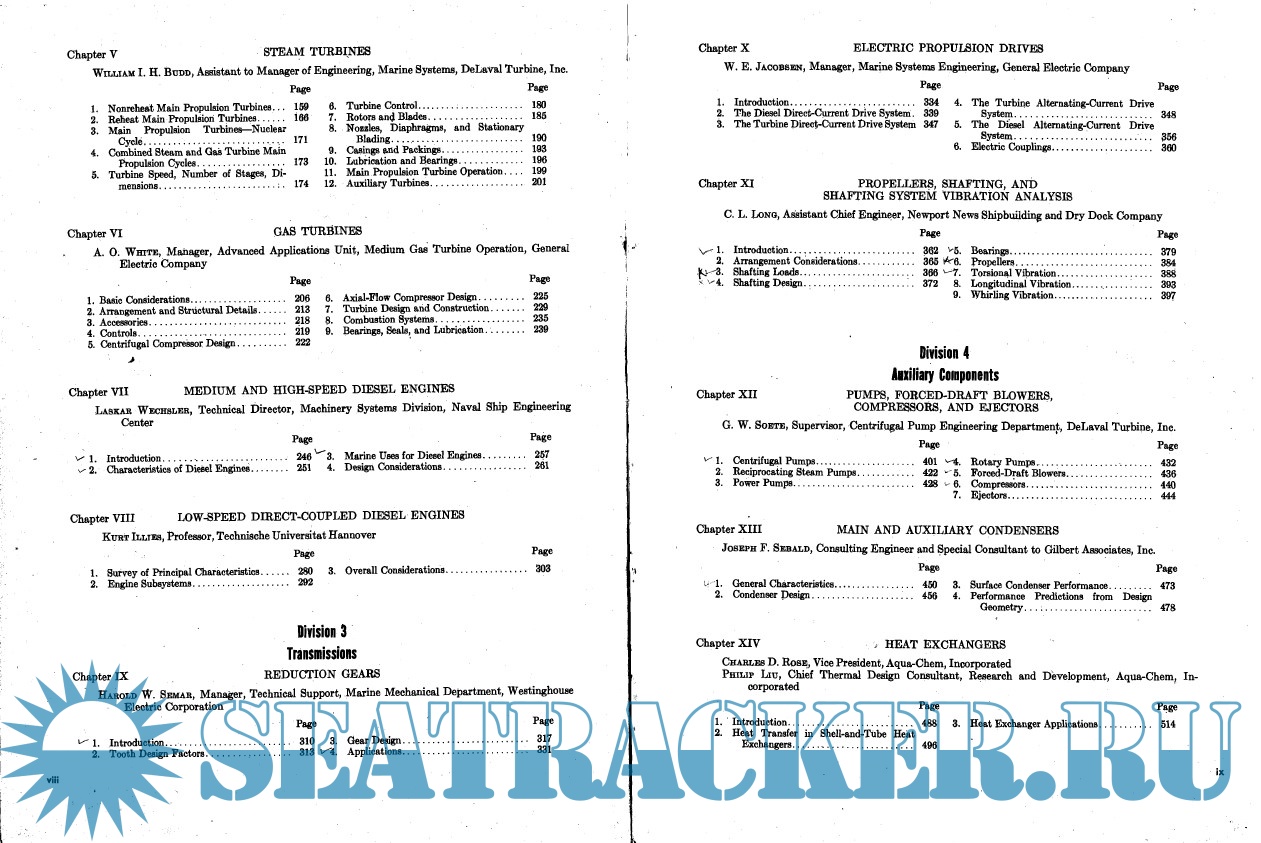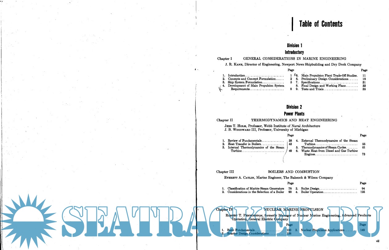 Year: 1980 Language: english Author: Roy L. Harrington, Various Genre: Textbook Publisher: SNAME Edition: 3rd Format: PDF Quality: Scanned pages + text layer Pages count: 442 Description: The book provides a complete review of marine engineering, encompassing both naval and merchant practices and incorporating the broad range of technological developments that evolved during the last decades. Also included is material presenting the principles associated with pollution control, design for production, integrated logistic support and noise control, as well as expanded coverage of propulsion shafting and piping. Long-time SNAME member Roy L. Harrington, now retired from Newport News Shipbuilding, edited this landmark volume.