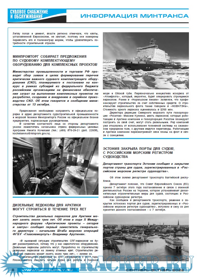 Судовое снабжение и обслуживание сентябрь - октябрь 2023 - Батраков В.Ф. (главный редактор) [2023,…