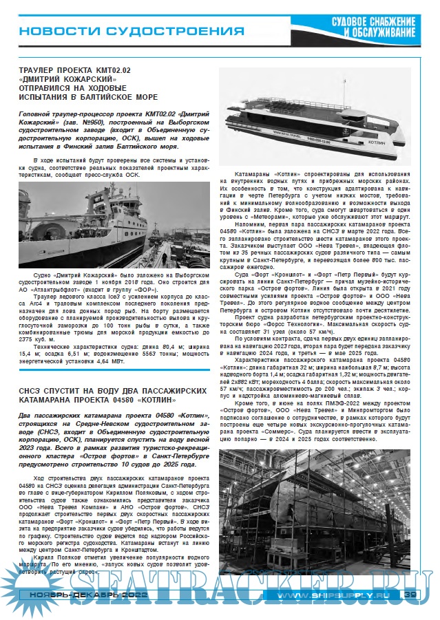 Год выпуска: 2022 Язык: русский Автор: Батраков В.Ф. (главный редактор) Жанр: Периодическое издание (журнал) Издание: 2022-06 Формат: PDF Качество: Изначально компьютерное (eBook) Количество страниц: 48 Описание: Судовое снабжение и обслуживание - периодический информационный бюллетень, издается с 1999 года и в настоящее время по праву занимает одно из ведущих мест среди специализированных отраслевых печатных изданий.Бюллетень стал надежным маркетинговым инструментом для технического менеджмента судостроительных, судоремонтных и снабженческих компаний. Более 500 отечественных и зарубежных фирм рекламодателей успешно сотрудничают с журналом с целью расширения своего бизнеса.Бесспорным преимуществом является бесплатное распространение издания целевой адресной рассылкой: судостроительным и судоремонтным предприятиям; морским и речным портам; судовладельцам морского, речного, промыслового флота; производителям и поставщикам судового оборудования, снабжения и материалов; предприятиям обслуживания флота (всего более 9000 компаний РФ).В журнале представлен весь спектр судового оборудования, комплектующих, запчастей, снабжения и материалов (с указанием контактных данных фирм производителей и поставщиков).