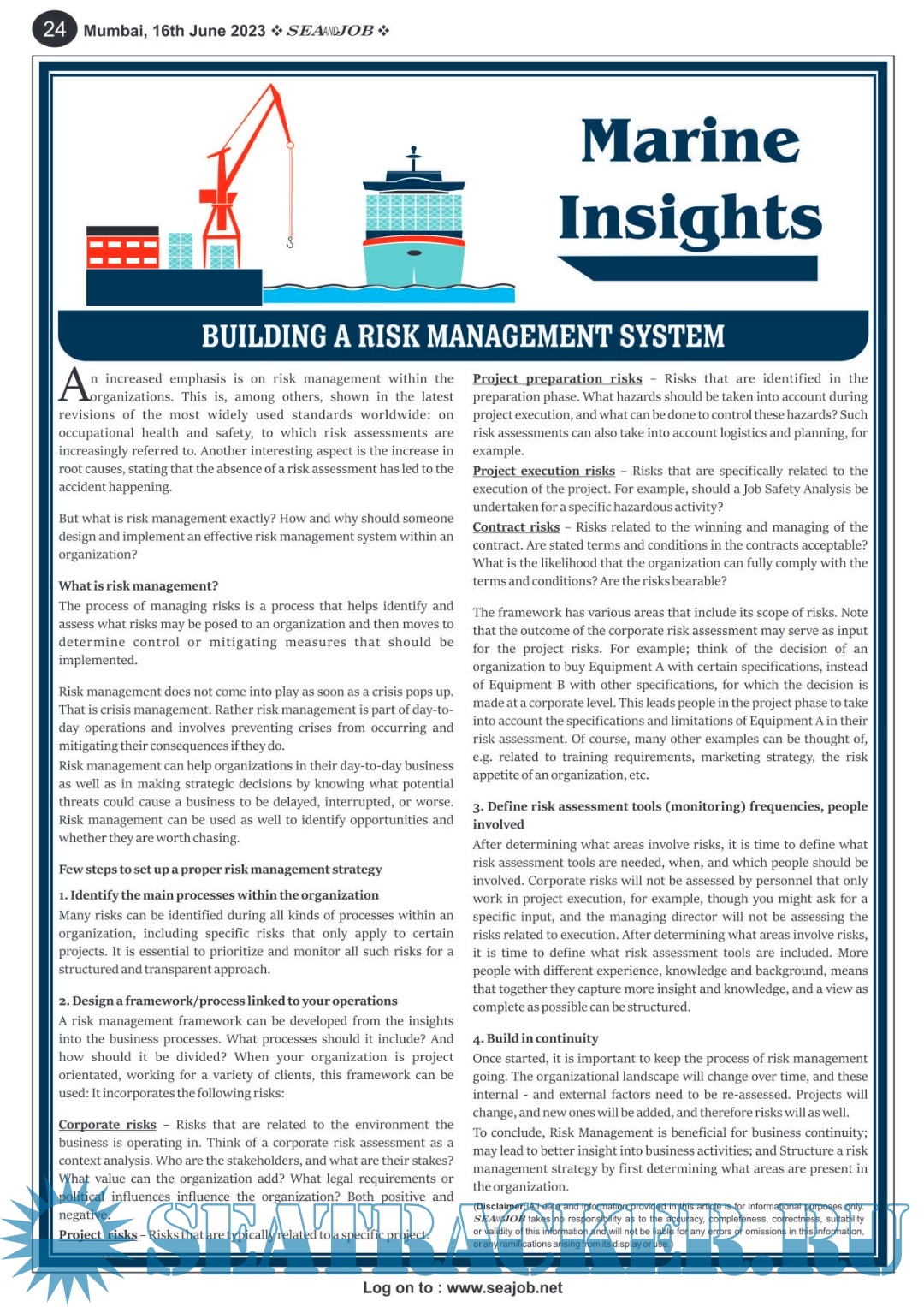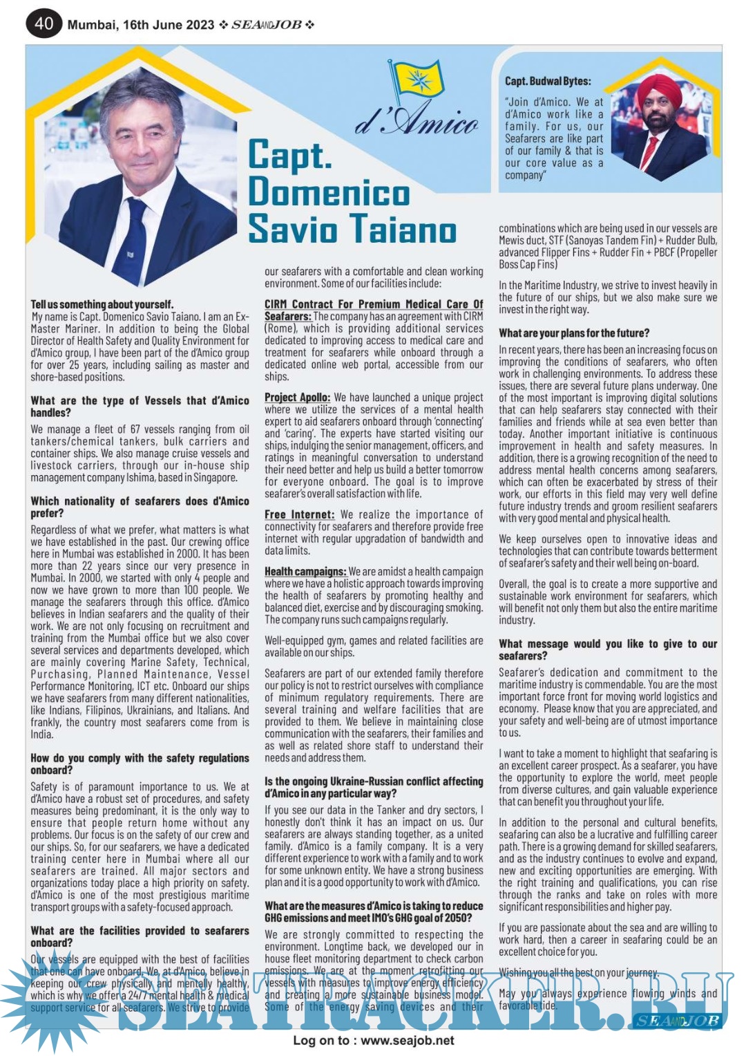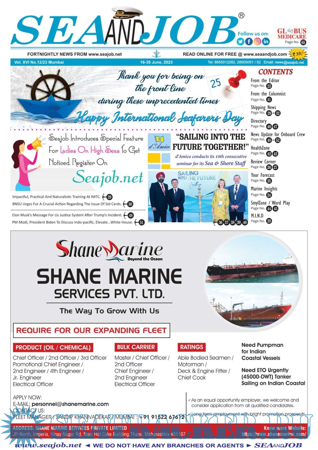 Description: The Sea and Job magazine launched in May 2007, was the second venture of Sea Line Group succeeding 'seajob.net' bringing the much renowned essence to the Group, the Sea and Job Magazine quickly gained popularity, becoming the No. 1 Shipping Magazine that came to be widely circulated all over India. Sea and Job over the years has evolved as the most trusted, ethical, objective and read maritime publication that possesses a large database of subscribers from various verticals in the industry.The magazine provides informative and interesting articles covering not just the shipping world but also the world outside it.Sea and Job is also a medium for the shipping/ manning companies to advertise marine jobs and also to promote their organization by publicizing internal activities like seminars, sports events and parties.Some notable endeavors of the magazine include the Know Your Recruiter Column, the Sailing Episodes Column and the Marine Insights section. The consistent efforts and the dedication to provide extraordinary services to the industry has resulted in the magnifying popularity and patronage of Sea and Job.