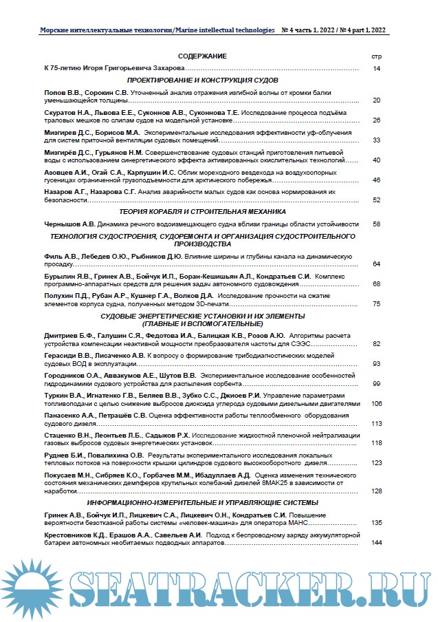 Морские интеллектуальные технологии 2022 № 4 Tом 1