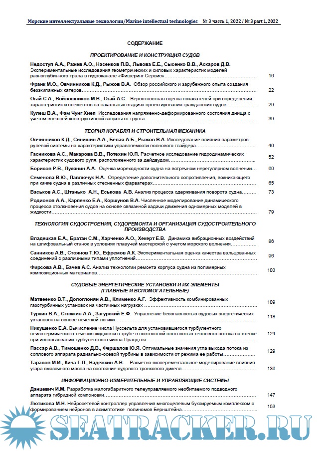 Морские интеллектуальные технологии 2022 № 3 Tом 1