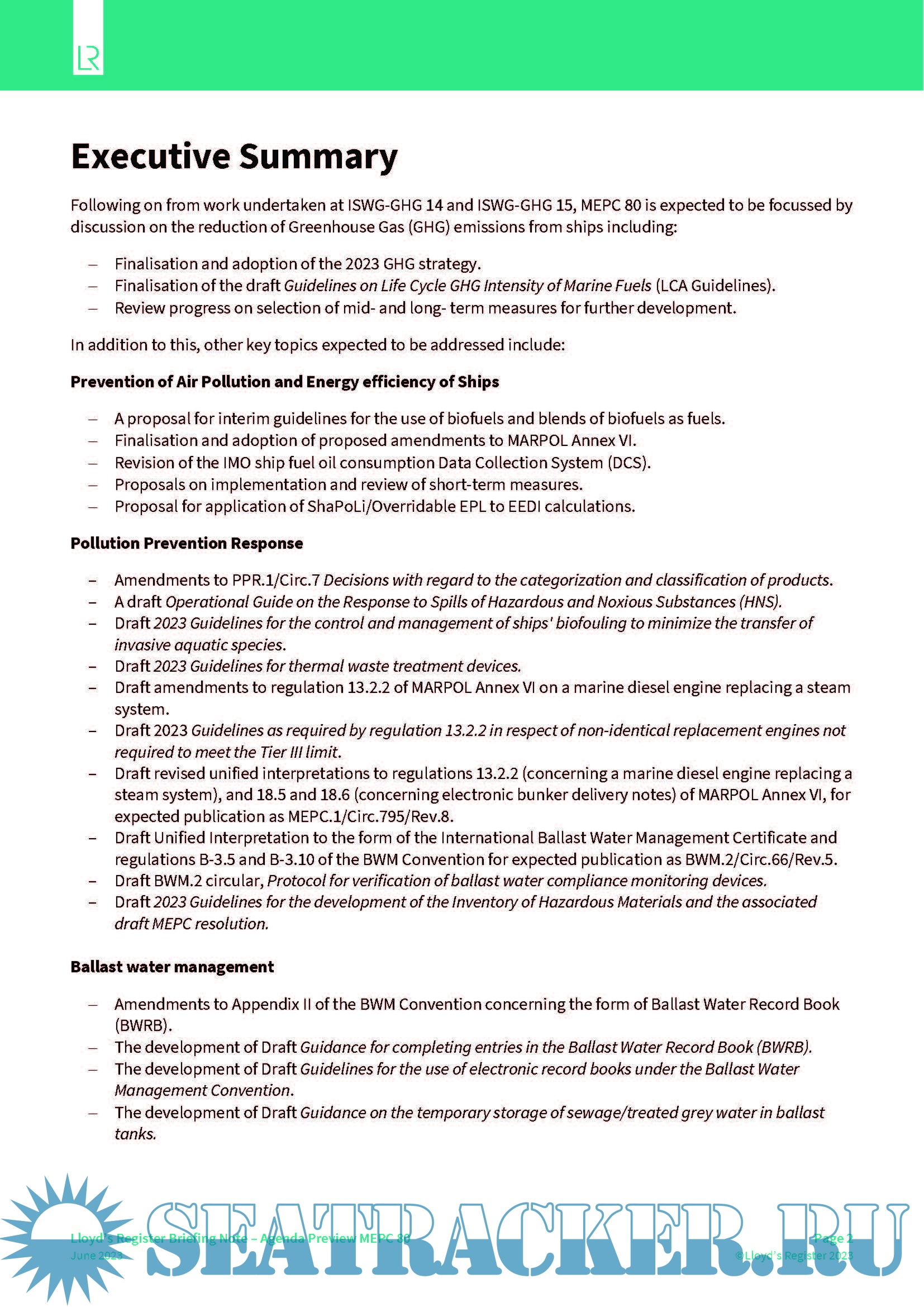 Year: 2023 Language: english Author: Lloyd’s Register Genre: Other Format: PDF Quality: eBook Pages count: 18 Description: MEPC 80 taken place 3-7 July 2023. This briefing summarises the discussions which are significant to LR’s work with our customers. see "Contents" for details