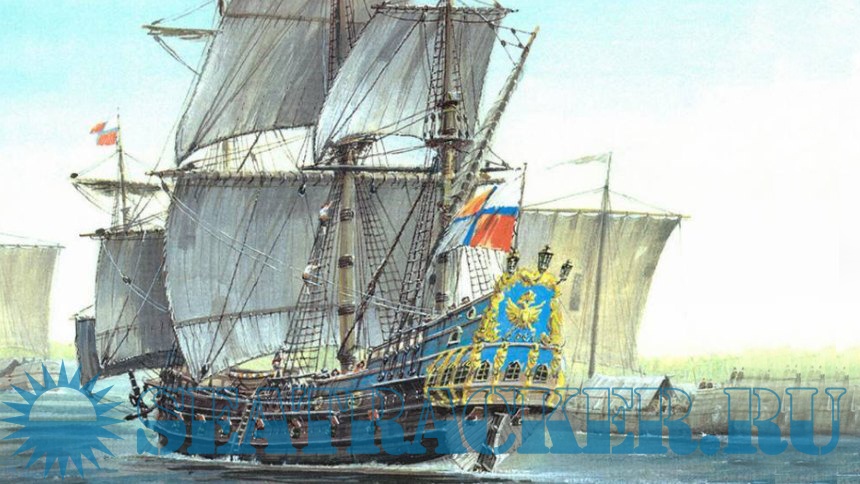 5 листов чертежей парусного корабля ОРЁЛ Россия 1669 год в масштабе 1:76