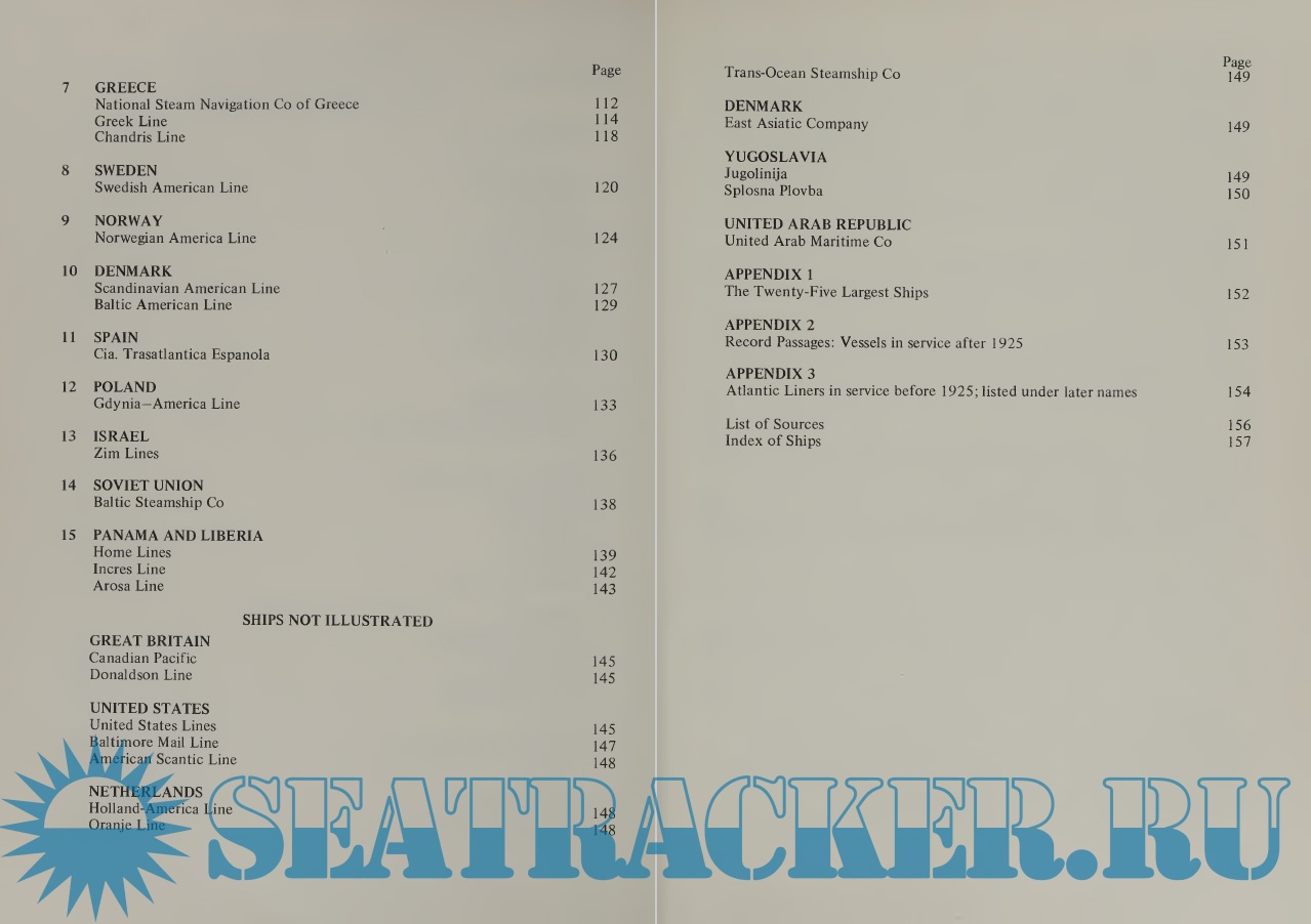 Year: 1972 Language: english Author: Emmons Frederick Genre: History Format: PDF Quality: Scanned pages Pages count: 168 Description: Brief biographies of the ships engaged in passenger service on the Atlantic route between 1925 and 1970.