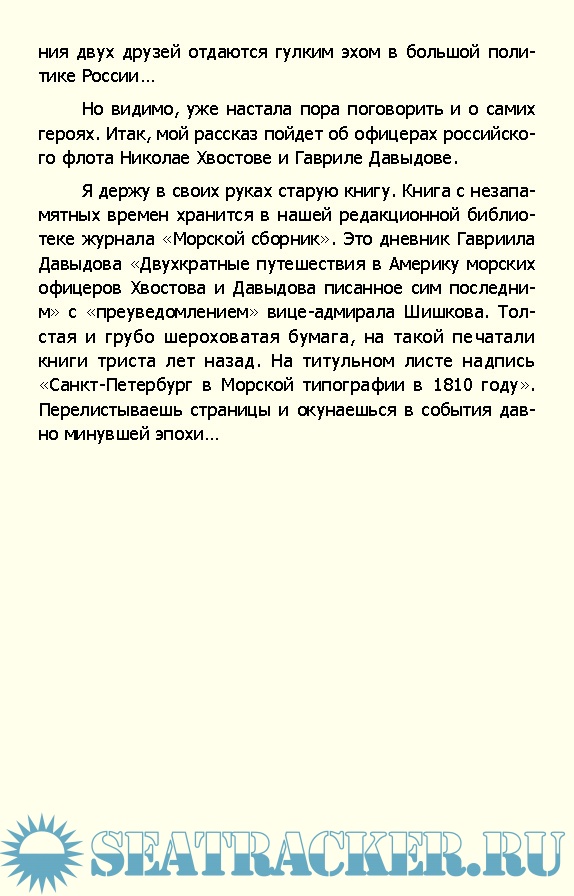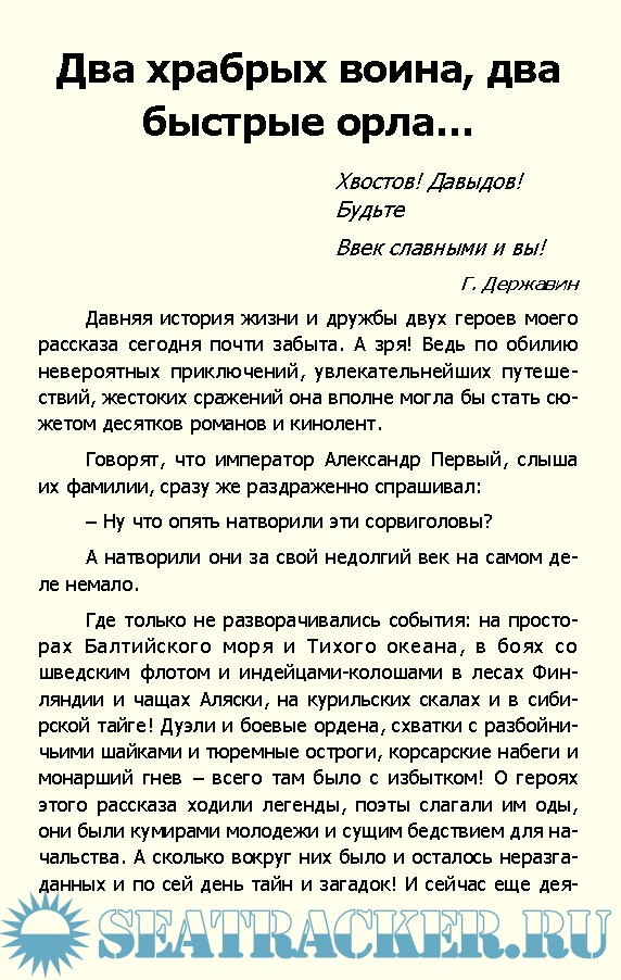 Офицеры Балтийского флота лейтенант Хвостов и мичман Давыдов являлись не только храбрыми моряками, отличившиеся в русско-шведской войне 1808-18709 годов, но исследователями Аляски и отважными мореплавателями.