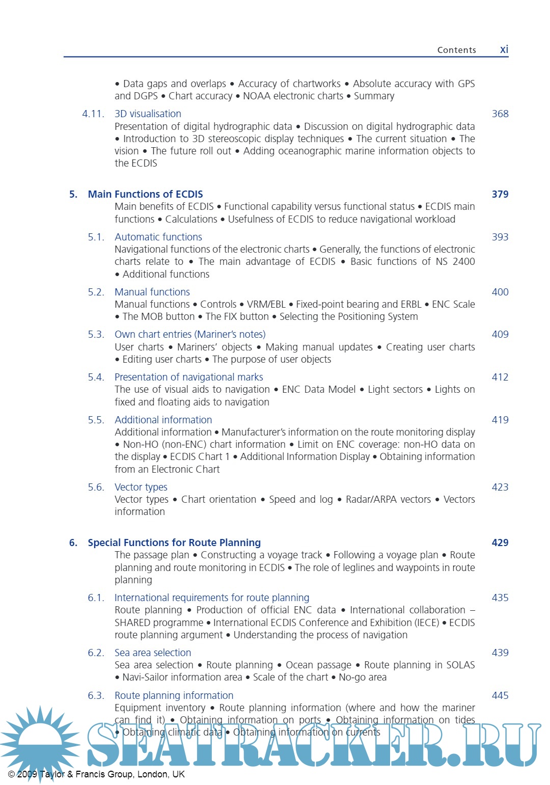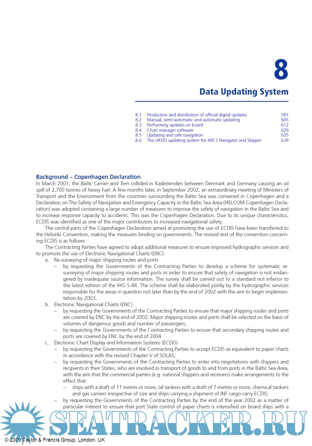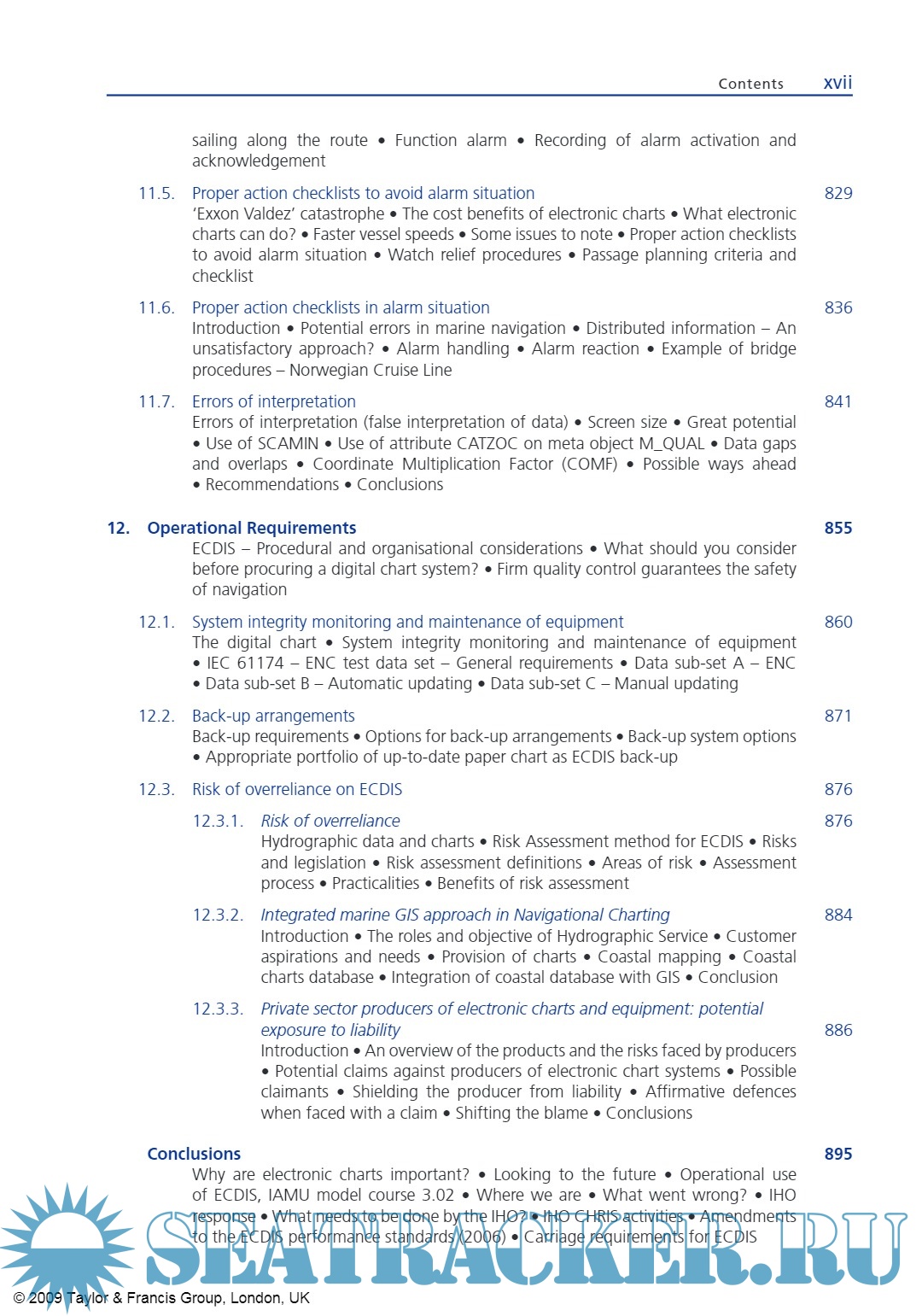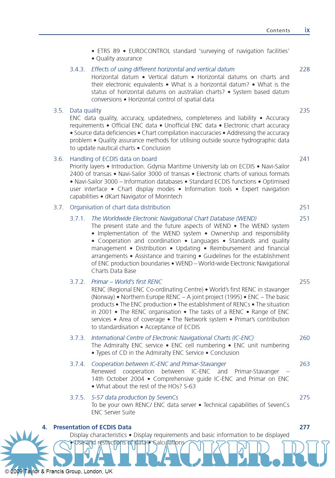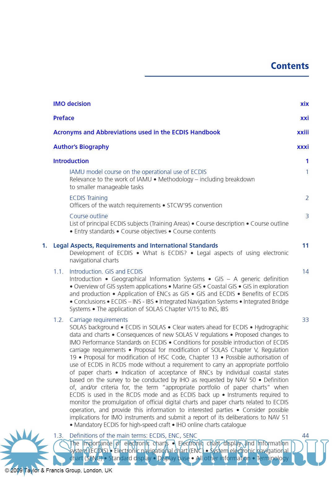 Year: 2009 Language: english Author: Adam Weintrit Genre: Reference book Publisher: Taylor & Francis Edition: - ISBN: 978-0-415-48246-2 Format: PDF Quality: eBook Pages count: 1051 Description: Today’s mariner is looking for something with the same standards of quality as the traditional standard paper chart, but which meets the demands of a new navigational era. Electronic navigation, although still relatively new and unfamiliar, is becoming increasingly more commonplace, particularly onboard commercial vessels. This guide aims at providing answers to some of the most commonly asked questions regarding electronic charts (ENC, RNC, DNC) and electronic chart systems (ECDIS, RCDS, ECS). The revision of SOLAS, Chapter V, which entered into force on 1 July 2002, has firmly established the electronic navigational chart as part of the international maritime safety system. Its possible recognition as a paper chart equivalent confirms the considerable safety benefits provided by the official Electronic Chart Display and Information Systems (ECDIS). Following the earlier adoption of the International Convention STCW 78/95 and IMO model training courses to assist in the implementation of the Convention and the associated IMO Assembly resolutions, a number of IAMU Member Universities had suggested that IAMU should develop model training courses on higher academic level to assist in achieving a more rapid transfer of information and skills regarding new developments in marine technology. The provision of model courses could help instructors improve the quality of their existing courses and enhance their effectiveness in meeting the requirements of the IAMU. The following structure of the handbook was applied: each chapter, sub-chapter and paragraph ends with a few of the most representative slides from the Author’s PowerPoint presentation of the IAMU Model Course on the Operational Use of ECDIS instead of the classical form of illustrations. A CD ROM with the full version of the PowerPoint presentation is part of this book. To avoid language problems, this handbook is the mosaic of thousands of different citations sourced from more than 1000 different text items (official and unofficial documents, books, articles, papers, publications, stickers, websites and various manufacturers’ instruction manuals) mentioned in the references list in the Bibliography, including the text on ECDIS and electronic charts from the last edition of the Bowditch American Practical Navigator and web sites of the IMO, IHO, IEC, NOAA, UKHO, AHS, CHS, NHS, SHOM, NGA, BSH, JHA, JCG, ECC, MCA, IC-ENC, PrimarStavanger, Transas Marine, PC Maritime, Caris, OSI, C-Map (now Jeppesen), SevenCs, ChartWorld, NSI, Morintech Navigation, Navionics, Thomas Gunn and many others. The book was written during a period of 5 years between 2003 and 2008 and it was extremely difficult to keep the book fully corrected and up-dated all the time. This book is intended for those who want to know about the selection, implementation, operational use, benefits, and management of ECDIS and ECS systems, but do not need to know all the technical details of how an ECDIS/GIS actually ‘works’. Presented in this book is the IAMU model course on training in the operational use of ECDIS, the first model course, and may be used by staff and students of any maritime university, navigational faculty and training institution as alternative or supplement to the IMO Model Course 1.27. Additional info: Some pages may be missing