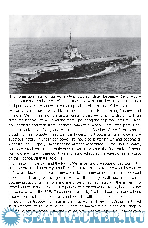 Year: 2023 Language: english Author: Terry Crowdy Genre: History Publisher: Pen and Sword Maritime Format: EPUB Quality: eBook Pages count: 305 Description: HMS Formidable was a British aircraft carrier during the Second World War. One of four Illustrious-class carriers, Formidable was an armored carrier, able to withstand air attacks, guarding its precious aircraft hangar with an armor-plated flight-deck. As well as its squadrons of fighters and torpedo bombers, Formidable was armed with sixteen 4.5-inch dual-purpose guns, mounted in eight turrets. When action stations sounded, in one of these turrets, sweating in the tropical heat due to heavy asbestos anti-flash gear, lifting shells from the hoist to the gunner, while frantically turning the air into a ‘plum pudding’ of smoke and flame to smash the enemy kamikaze from the sky, was the author’s grandfather, Arthur Flint. Illustrated with almost 200 contemporary photographs throughout, Formidable is a memorial to the voyages and service of Arthur Flint and his shipmates during the war, from the Battle of Matapan, the landings in North Africa, Sicily and Salerno, to the arctic hunt for Tirpitz, before Formidable steamed east to Sydney in 1945 and joined the British Pacific Fleet, fighting alongside the Americans at Okinawa and the final assault against Japan.