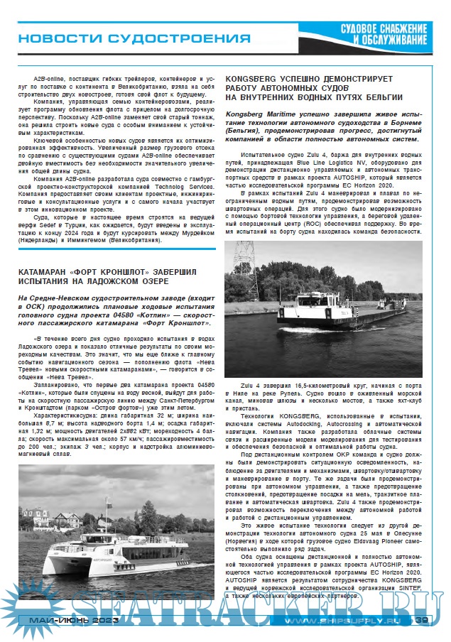 Год выпуска: 2023 Язык: русский Автор: Батраков В.Ф. (главный редактор) Жанр: Периодическое издание (журнал) Формат: PDF Качество: Изначально компьютерное (eBook) Количество страниц: 56 Описание: "Судовое снабжение и обслуживание" - периодический информационный бюллетень, издается с 1999 года и в настоящее время по праву занимает одно из ведущих мест среди специализированных отраслевых печатных изданий.Бюллетень стал надежным маркетинговым инструментом для технического менеджмента судостроительных, судоремонтных и снабженческих компаний. Более 500 отечественных и зарубежных фирм рекламодателей успешно сотрудничают с журналом с целью расширения своего бизнеса.Бесспорным преимуществом является бесплатное распространение издания целевой адресной рассылкой: судостроительным и судоремонтным предприятиям; морским и речным портам; судовладельцам морского, речного, промыслового флота; производителям и поставщикам судового оборудования, снабжения и материалов; предприятиям обслуживания флота (всего более 9000 компаний РФ).В журнале представлен весь спектр судового оборудования, комплектующих, запчастей, снабжения и материалов (с указанием контактных данных фирм производителей и поставщиков).