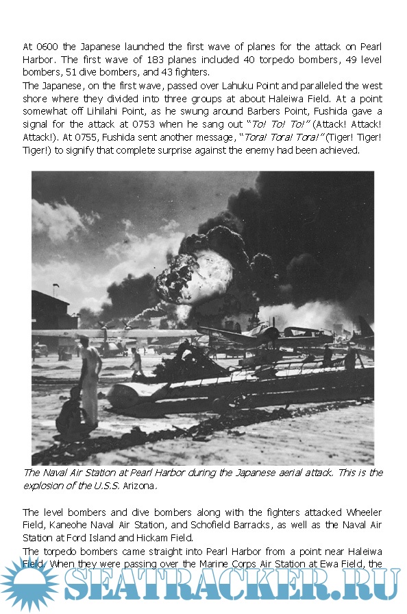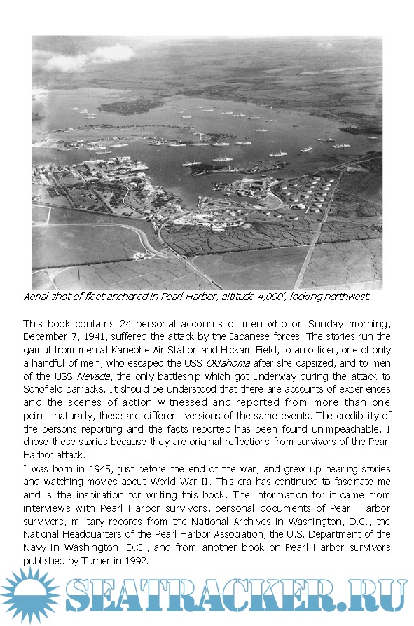 Description: On December 7, 1941, Japan waged a surprise attack on the United States Naval Base at Pearl Harbor. It was a major victory for the Japanese Navy, which in less than two hours destroyed 188 American planes, damaged another 159, and sunk or seriously damaged 18 U.S. warships. The battleships Arizona and Oklahoma were sunk. The battleships California, West Virginia and Tennessee were badly damaged and would not rejoin the United States fleet for months. Over 2,400 American military personnel were killed and 1,178 were wounded. The Japanese lost 29 planes and pilots, five midget submarines and one large sub with their crews. Here are 24 personal accounts of servicemen who survived the attack on Pearl Harbor. These accounts cover in detail the location of each man and his experience during and after the actual attack. Also included is general information about Pearl Harbor.