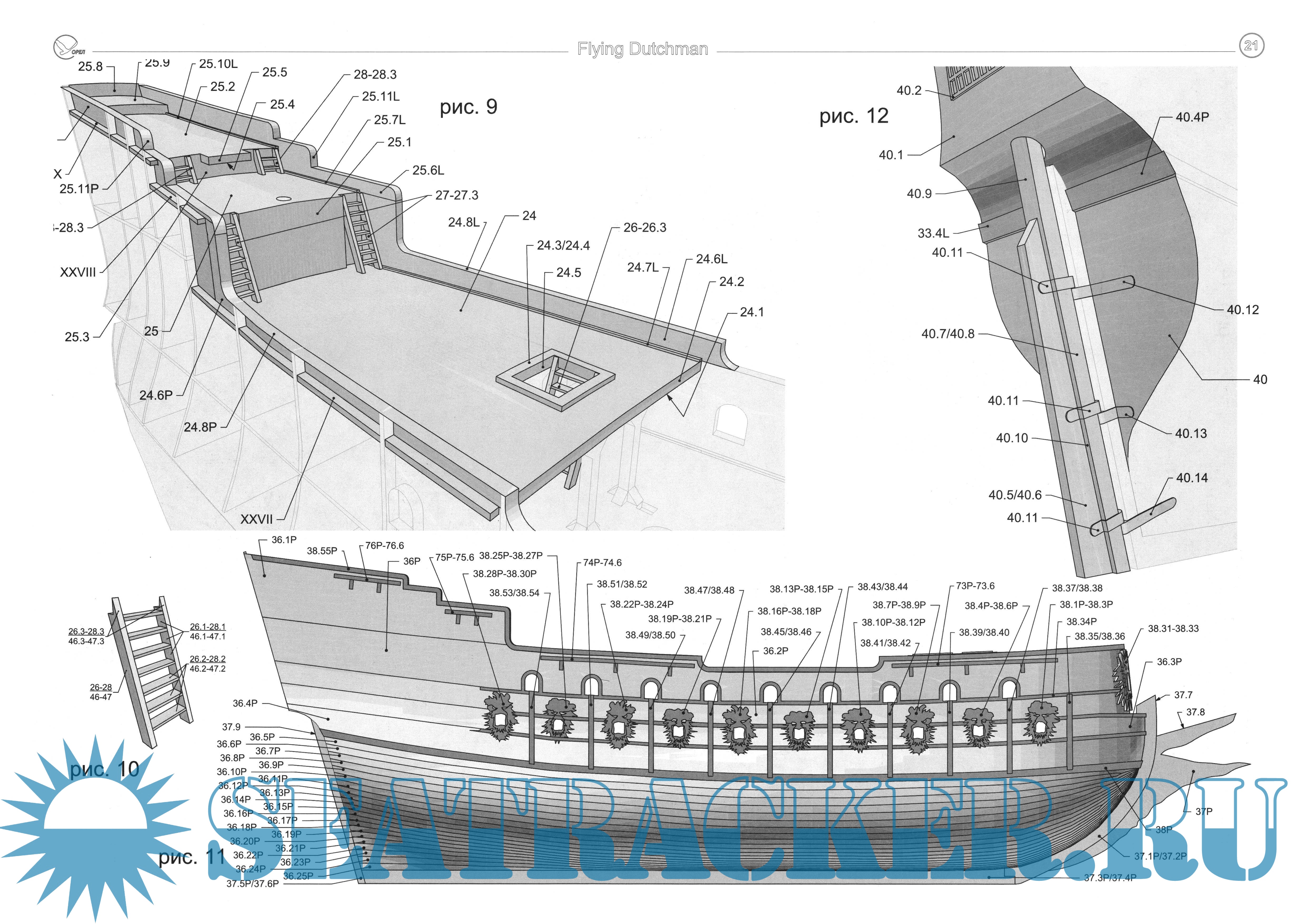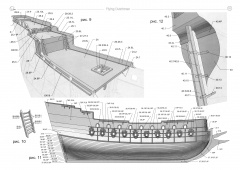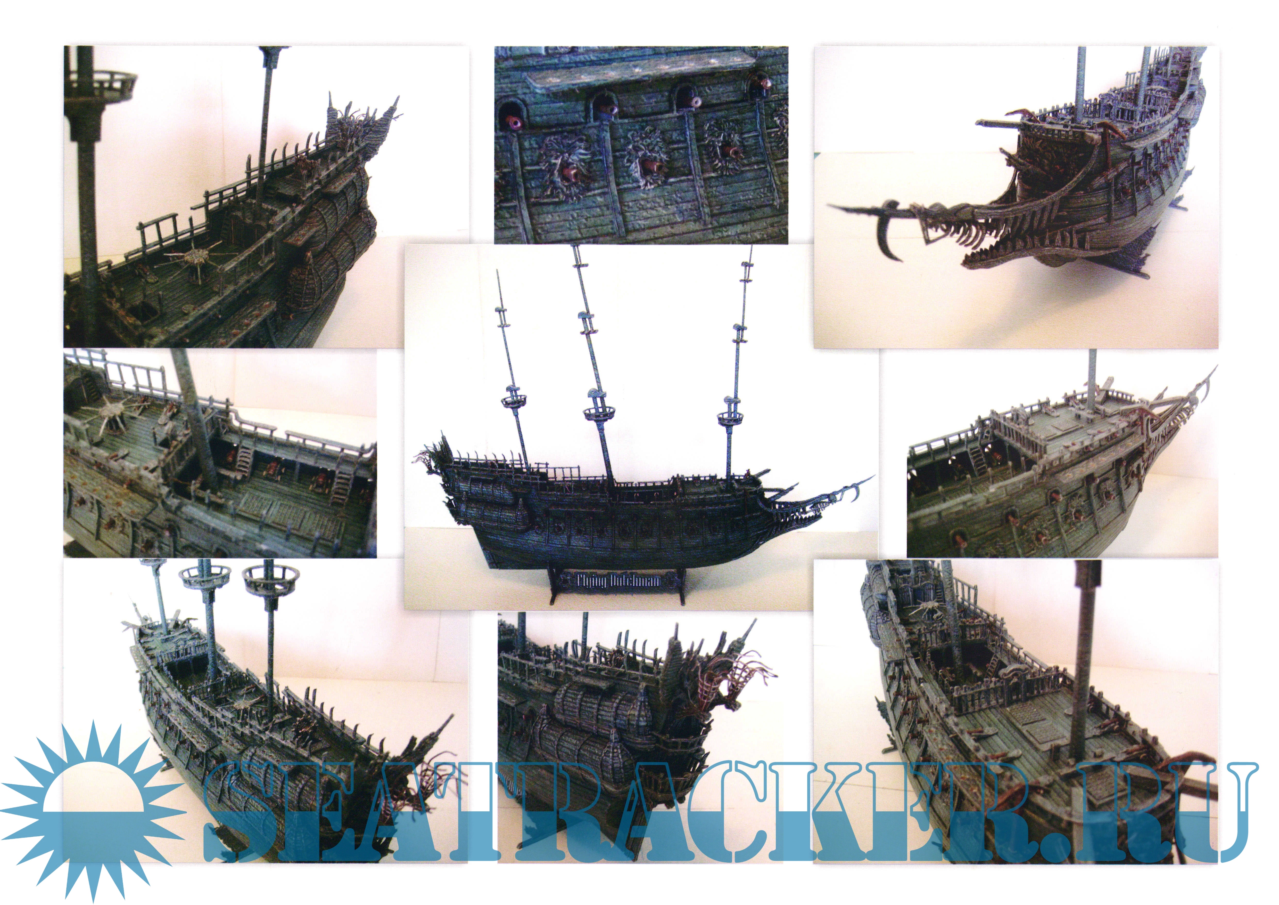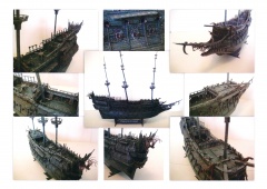 27 листов цветных выкроек и описаний для создания бумажной модели галеона "Flying Dutchma" из фильма "Пираты Карибского моря. На краю света", 2007 год в масштабе 1:100