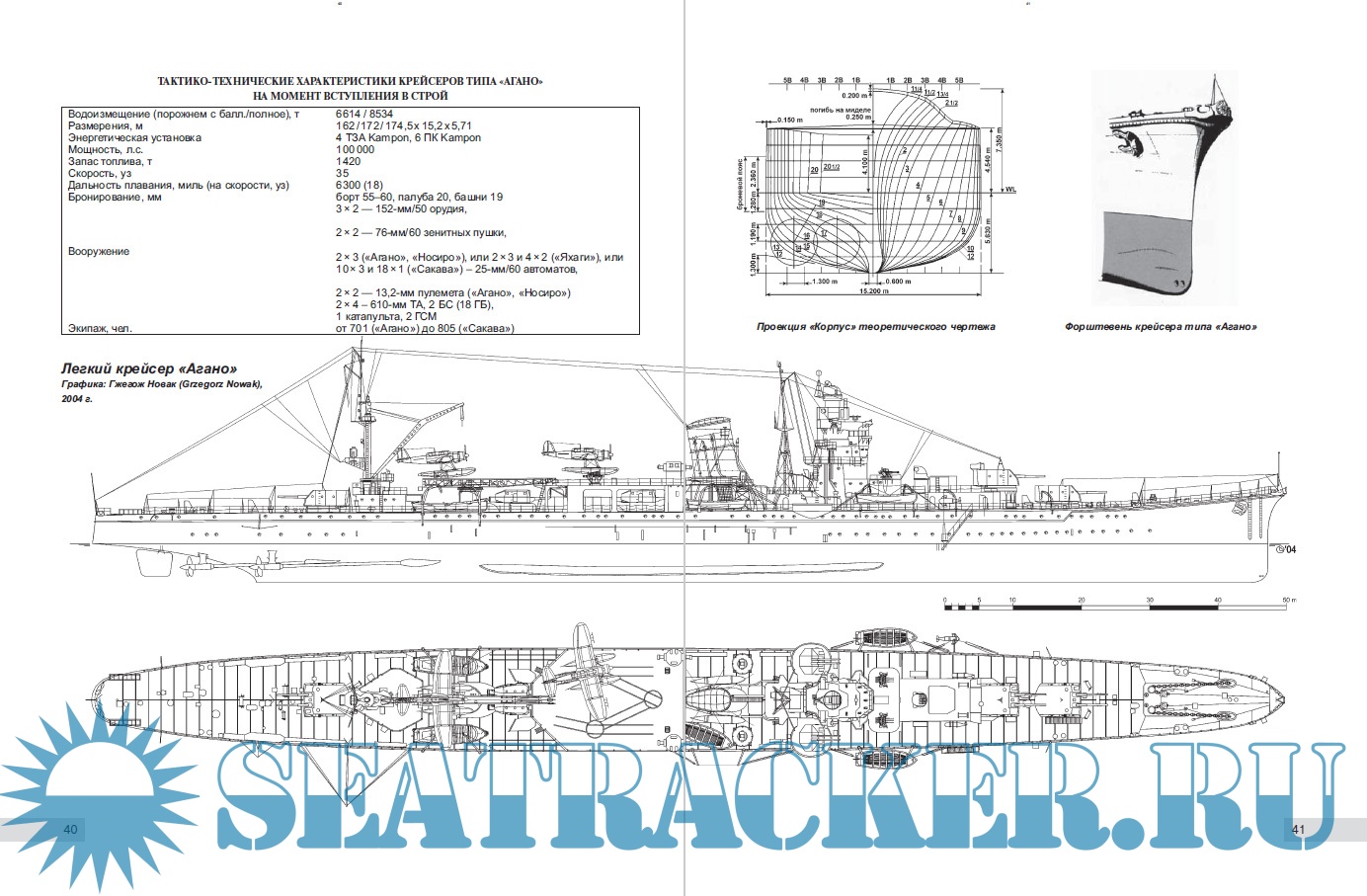 Описание: Для японского Императорского флота Второй мировой войны корабли типа "Агано" явились естественным шагом вперед по сравнению со "стандартными" 5500-тонными крейсерами. Они стали единственными серийными современными кораблями своего класса, от иностранных аналогов их отличало мощное торпедное вооружение, наличие двух бортовых гидросамолетов, усиленное легкое зенитное вооружение.