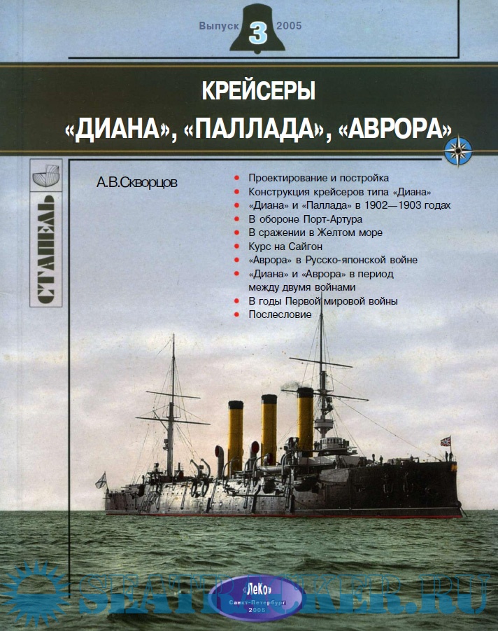 Проектирование и постройка. Конструкция крейсеров типа "Диана". "Диана" и "Паллада" в 1902 - 1903 годах. В обороне Порт-Артура. В сражении в Желтом море. Курс на Сайгон. "Аврора" в Русско-японской войне. "Диана" и "Аврора" в период между двумя войнами. В годы Первой мировой войны. Послесловие.