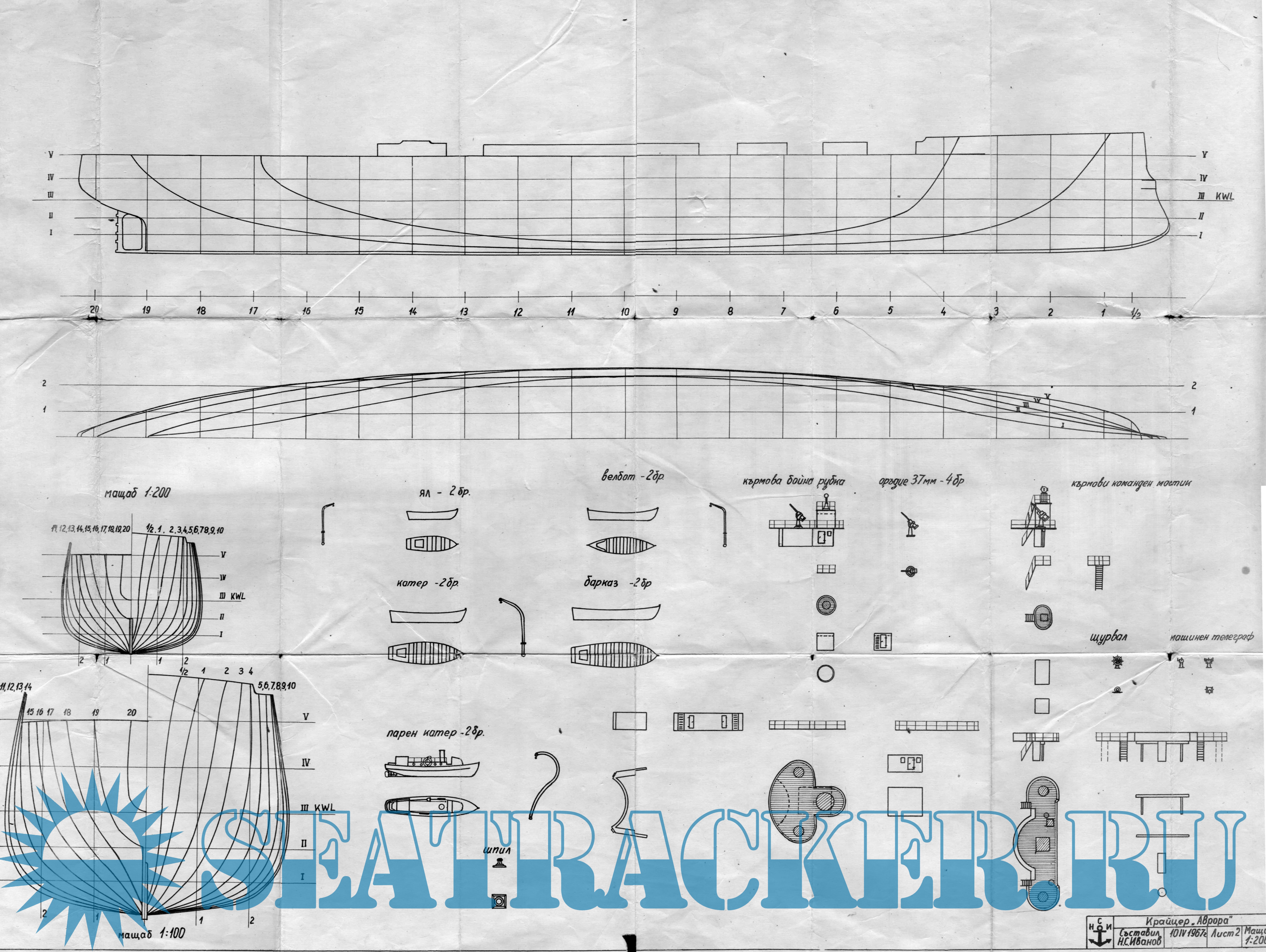 45 листов чертежей крейсера "Аврора" в масштабе 1:200