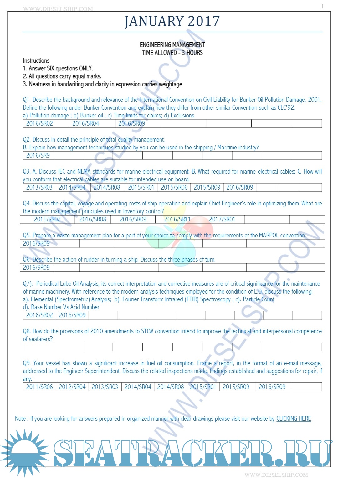 Description: M.E.O. Class I Question Paper set for Mercantile Marine Department (MMD), D.G. Shipping India Exams.