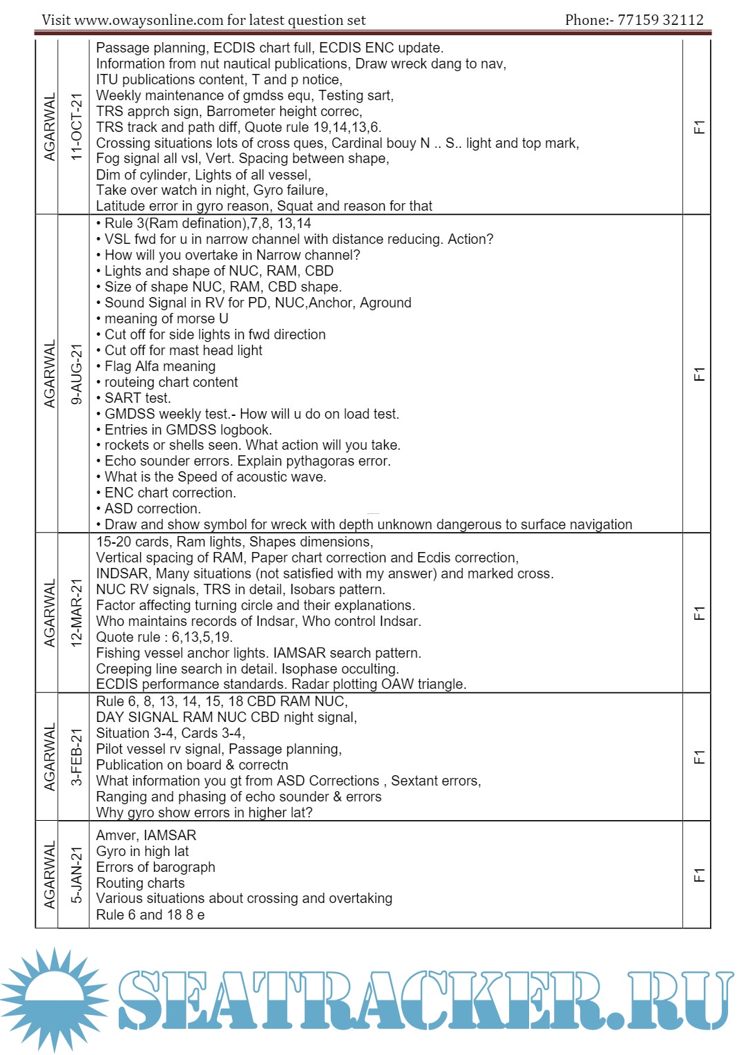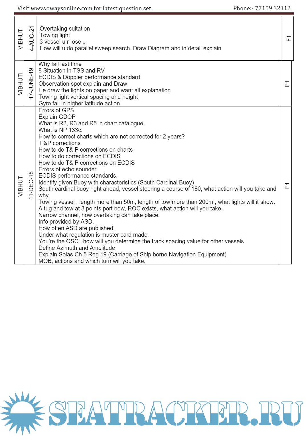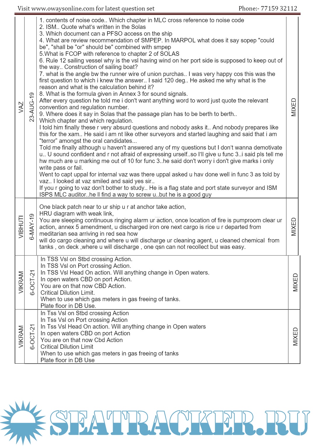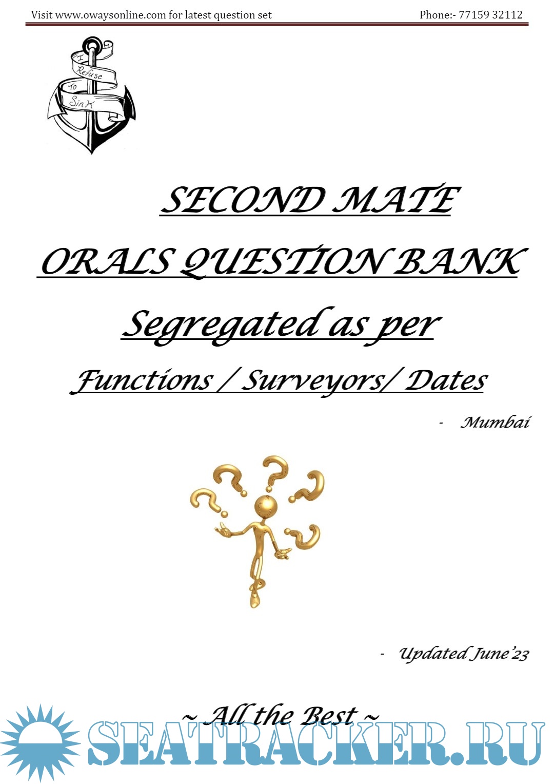 Description: 2nd Mate MMD Orals Exams Surveyor Question Set Mumbai.Question set arranged in the order Functions / surveyors / Dates.