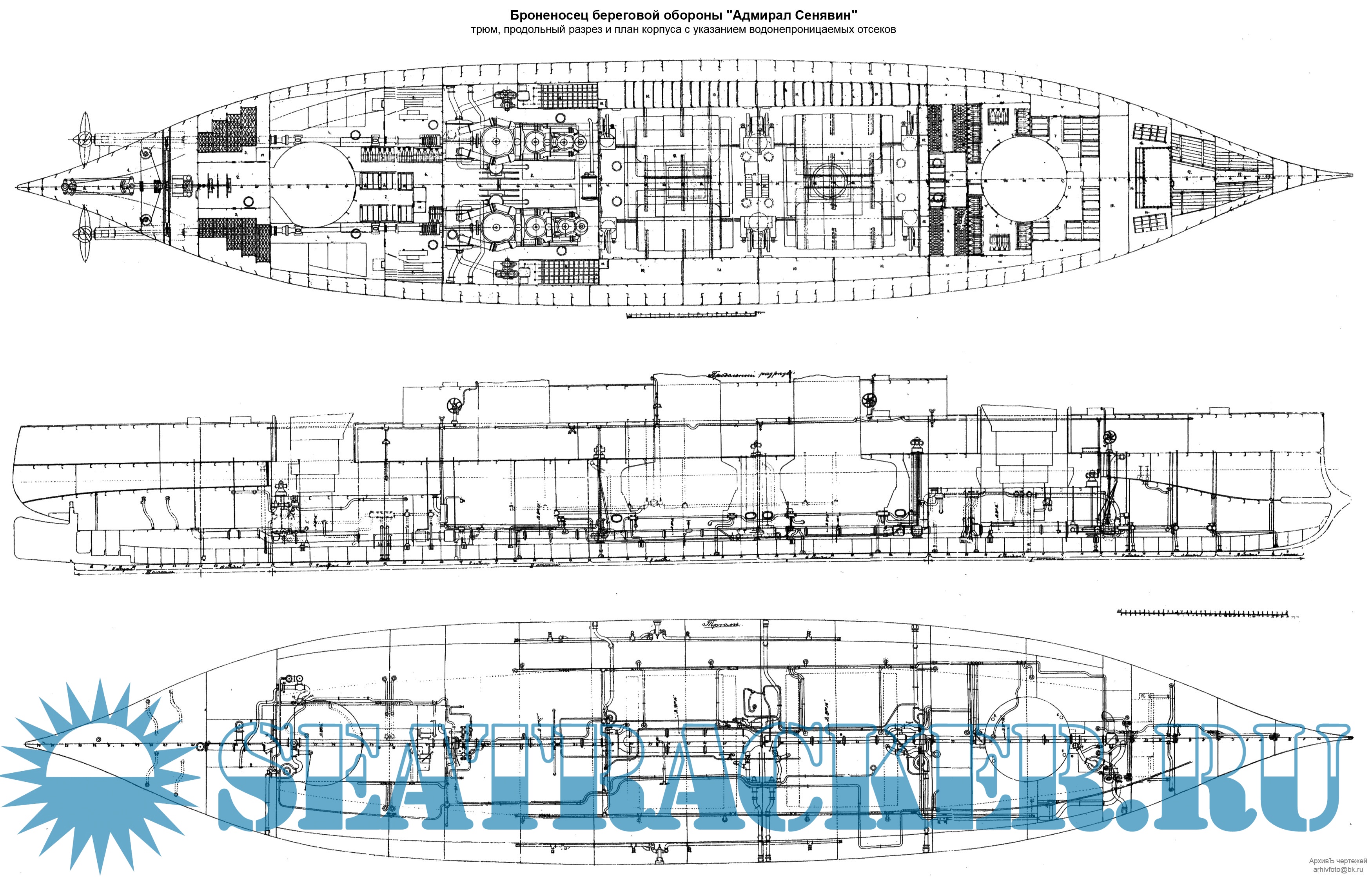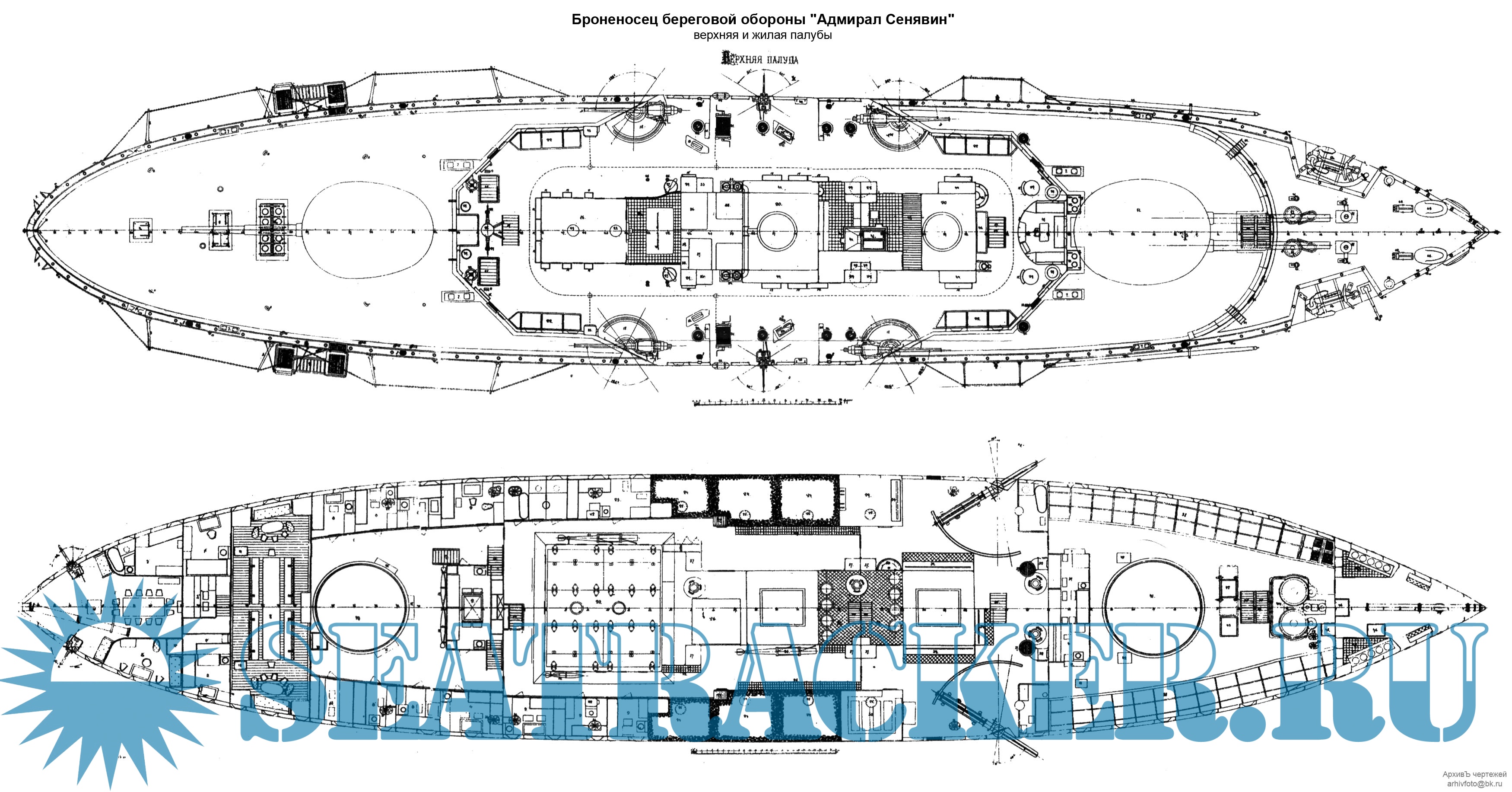 Броненосец береговой обороны "Адмирал Сенявин" 1896 год (чертежи)