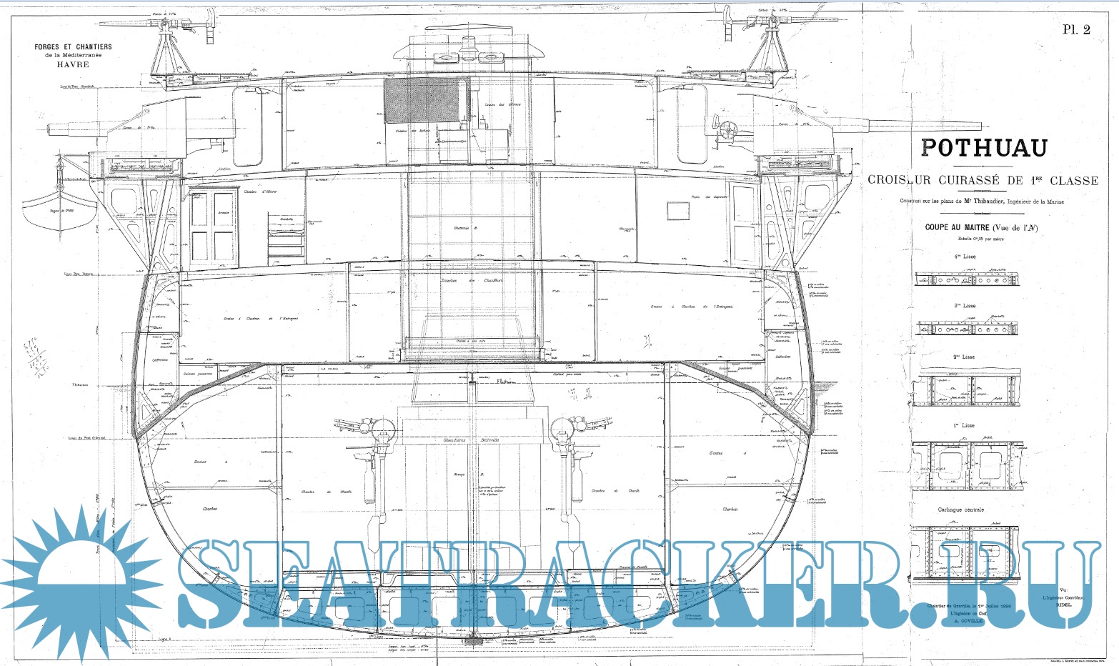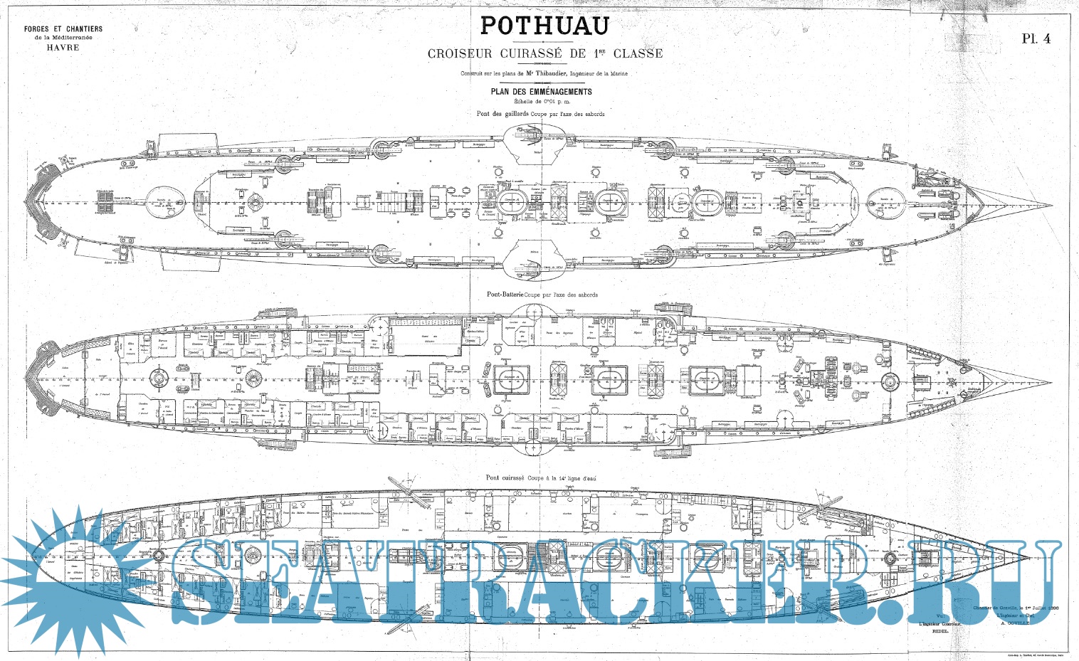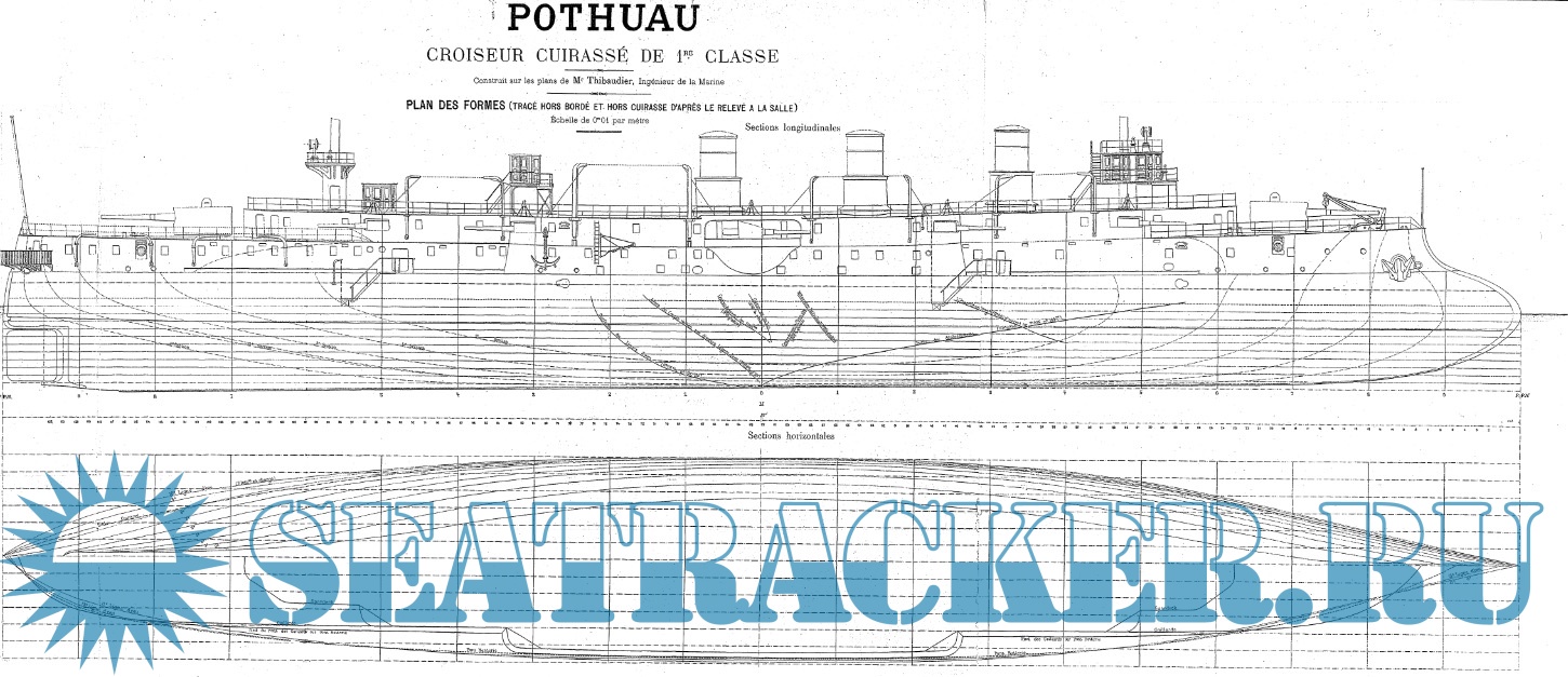 Архивные чертежи крейсера 1 ранга POTHUAU (Франция) 1895 год
