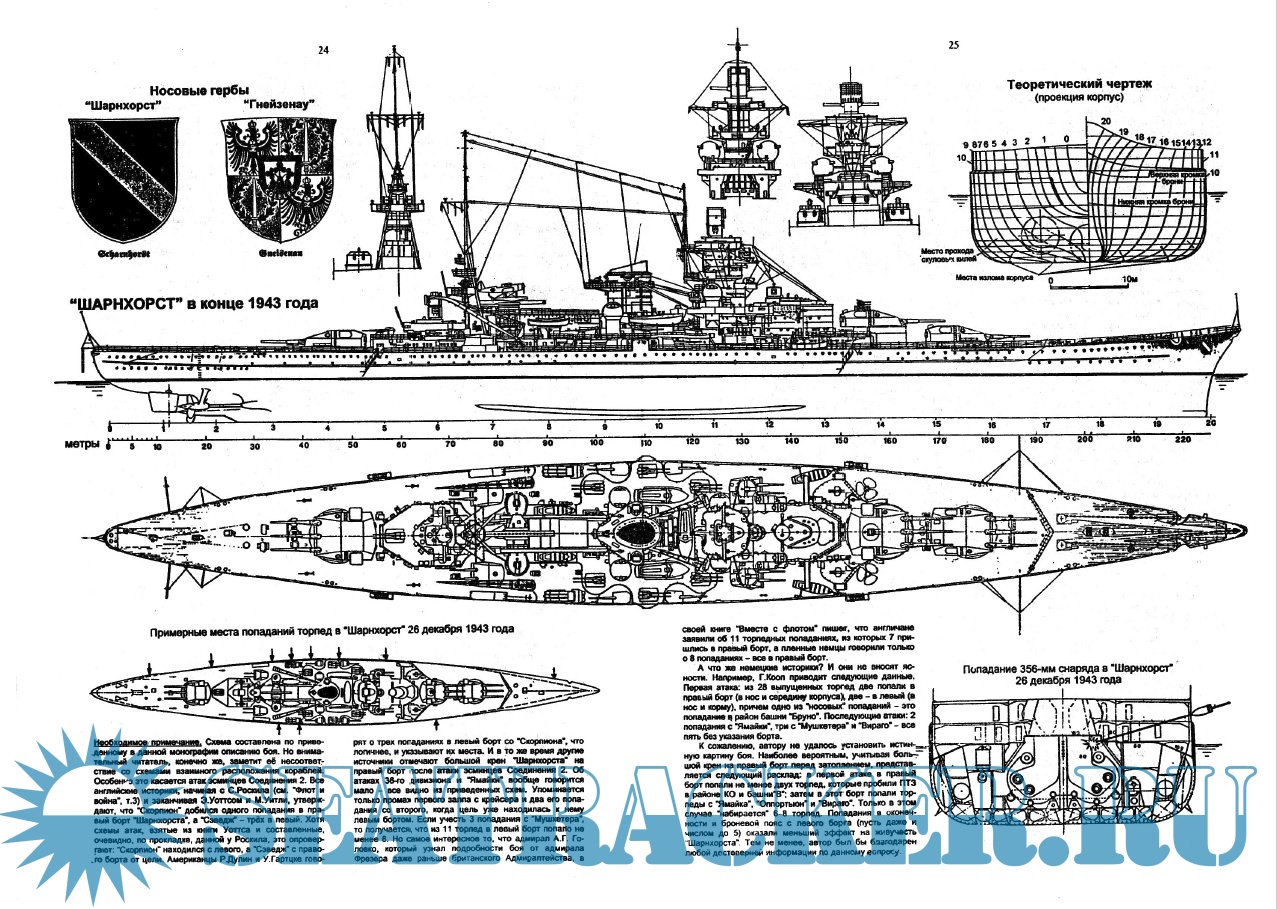 Описание: Германские линкоры «Шарнхорст» и «Гнейзенау» — одни из самых знаменитых кораблей — участников Второй мировой войны. Они доставили немало хлопот «владычице морей», активно действуя в Атлантике и Заполярье, но в конце концов оба были уничтожены. Сразу же после потопления «Шарнхорста» командующий британским Флотом метрополии адмирал Брюс Фрэйзер сказал офицерам своего флагманского корабля: «Я надеюсь, что любой из вас, кому когда-либо придется вести свой корабль в бой с намного сильнейшим противником, будет командовать так же доблестно, как сегодня командовали «Шарнхорстом». Пожалуй, столь высокой оценки, прозвучавшей из уст неприятеля, не удостоился больше ни один линкор в мире.