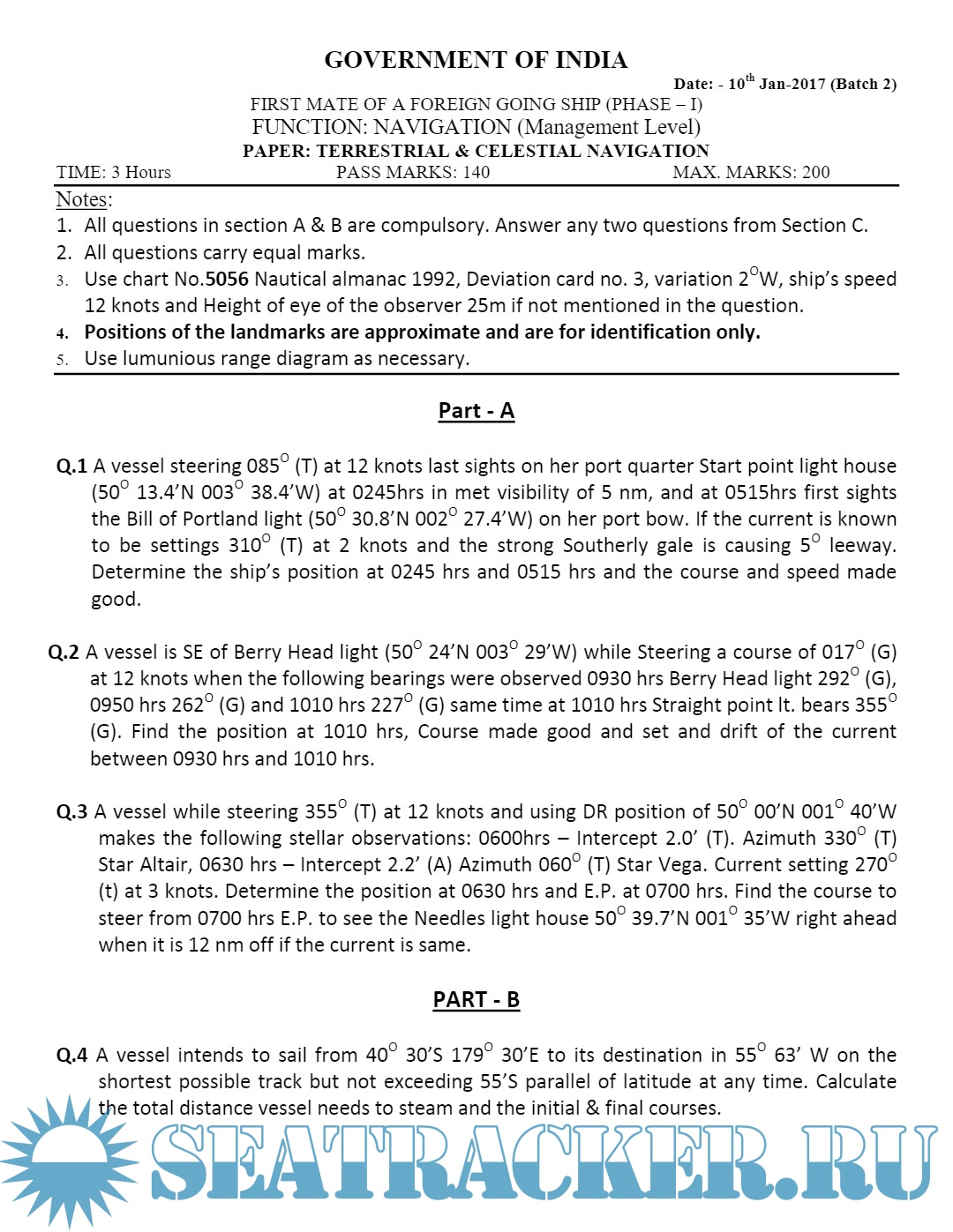 Description: Question Paper Set for Phase I (Chief Mate F.G.) Mercantile Marine Department (MMD), India Examinations.