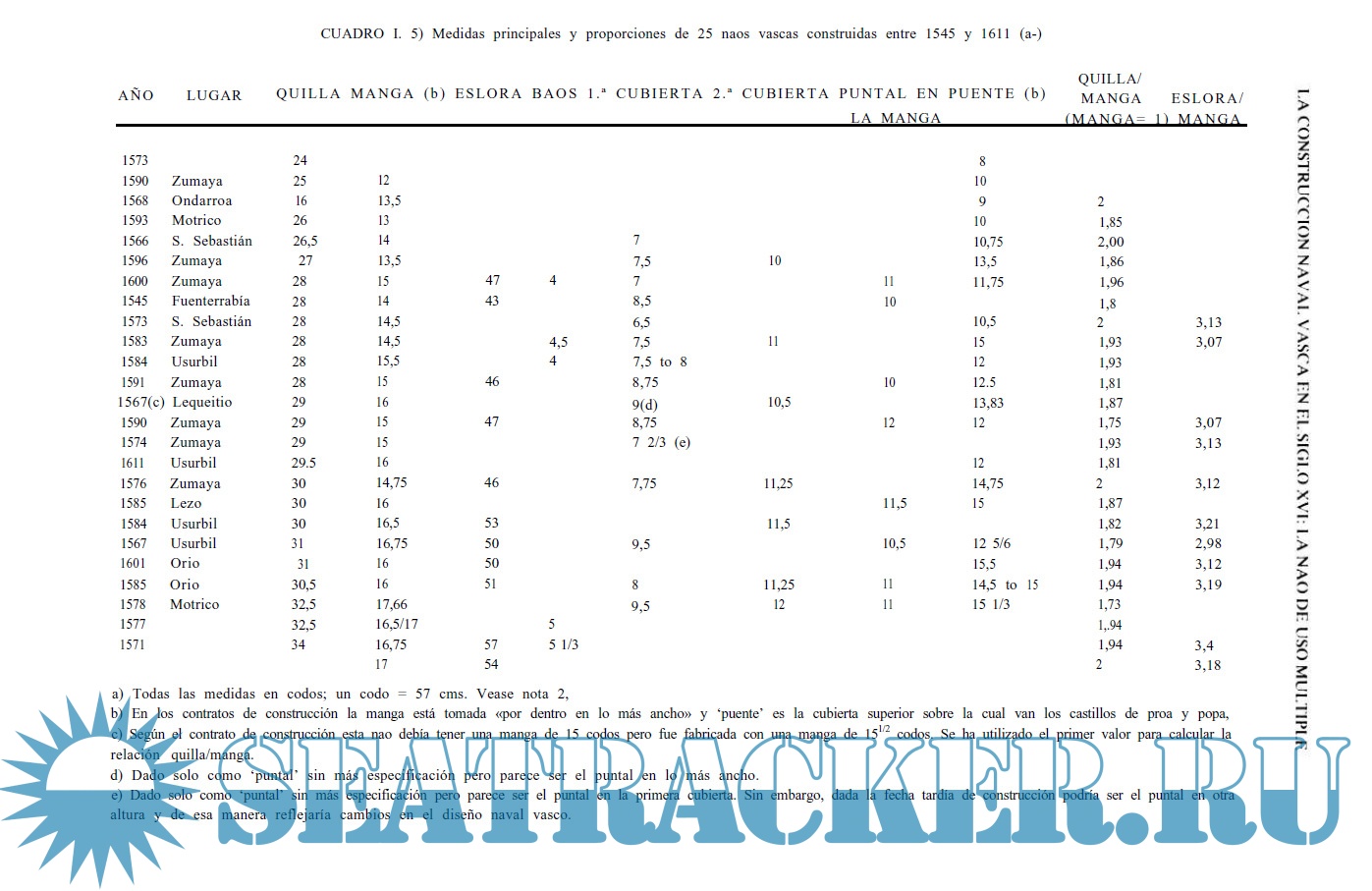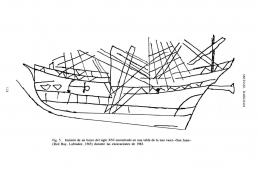 A través del estudio de la documentación y de los contratos de construcción, al autor analiza la construcción de naos vascas y la particularidades técnicas que presentan estas naves.