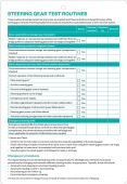 Description: This card provides an instant point of reference when checking steering equipment, setting out in clearly marked sections the frequency and nature of checks to be performed. The laminated, wipe-clean finish makes it easy to update the card each time the checks are completed.