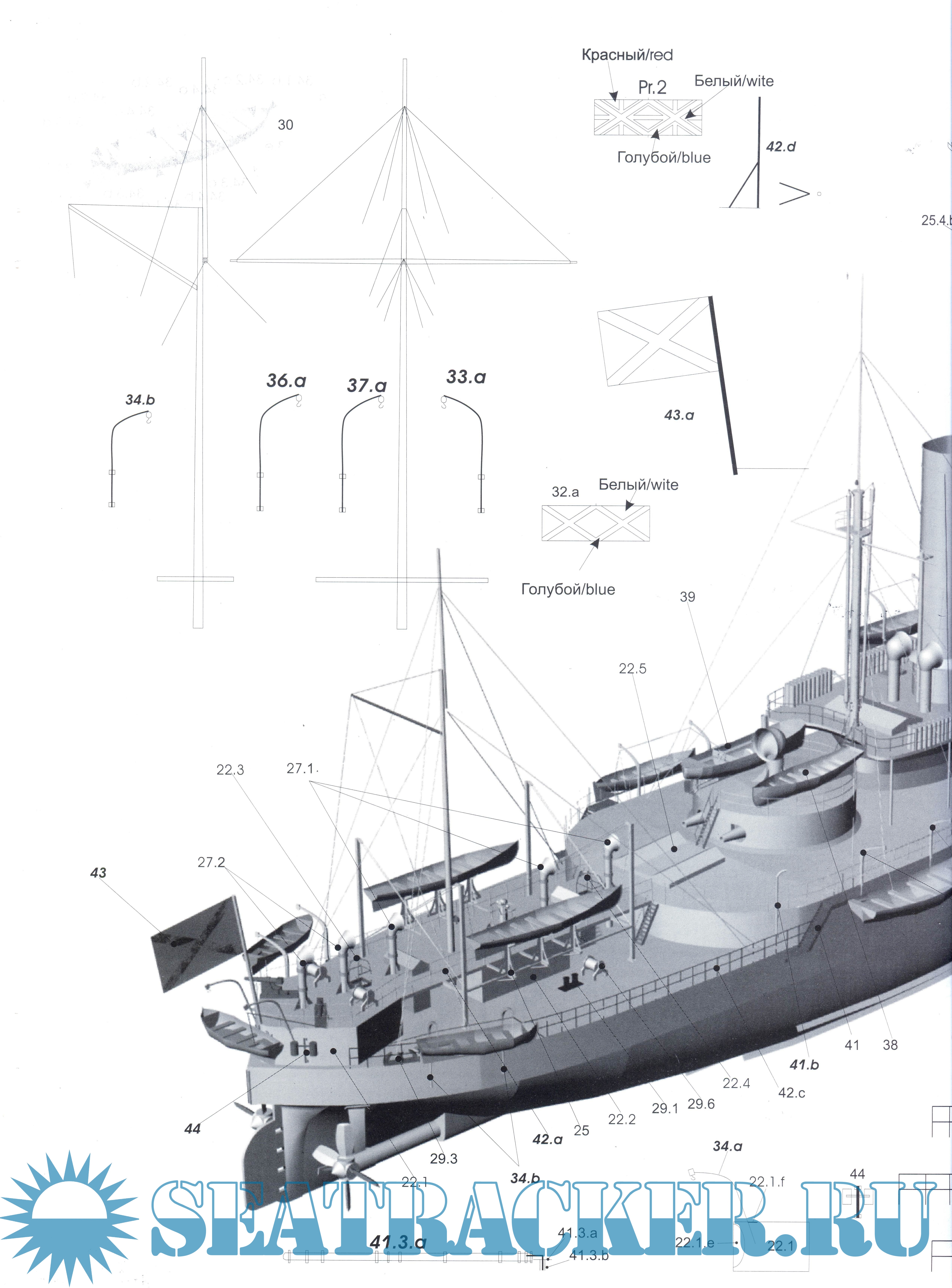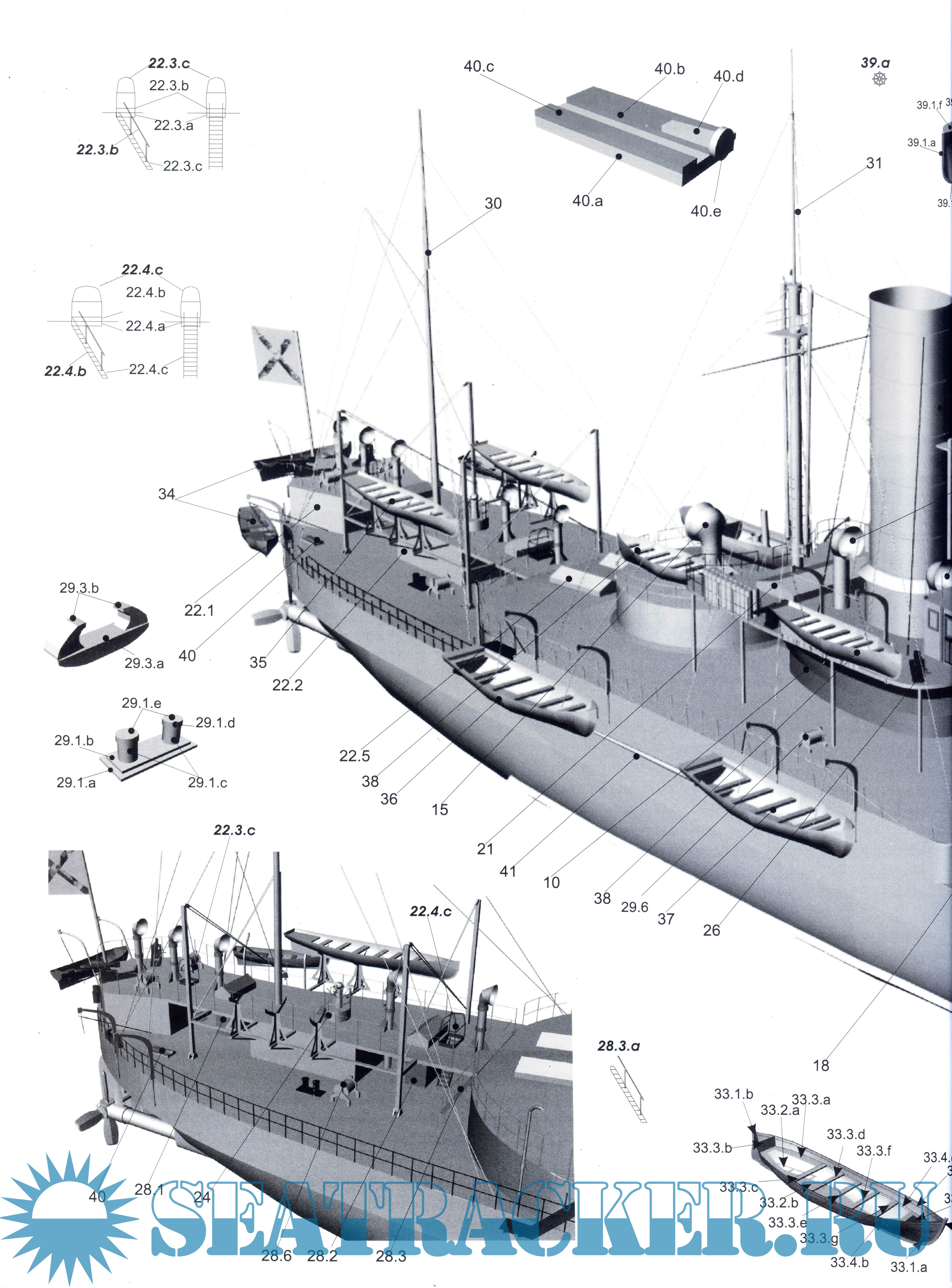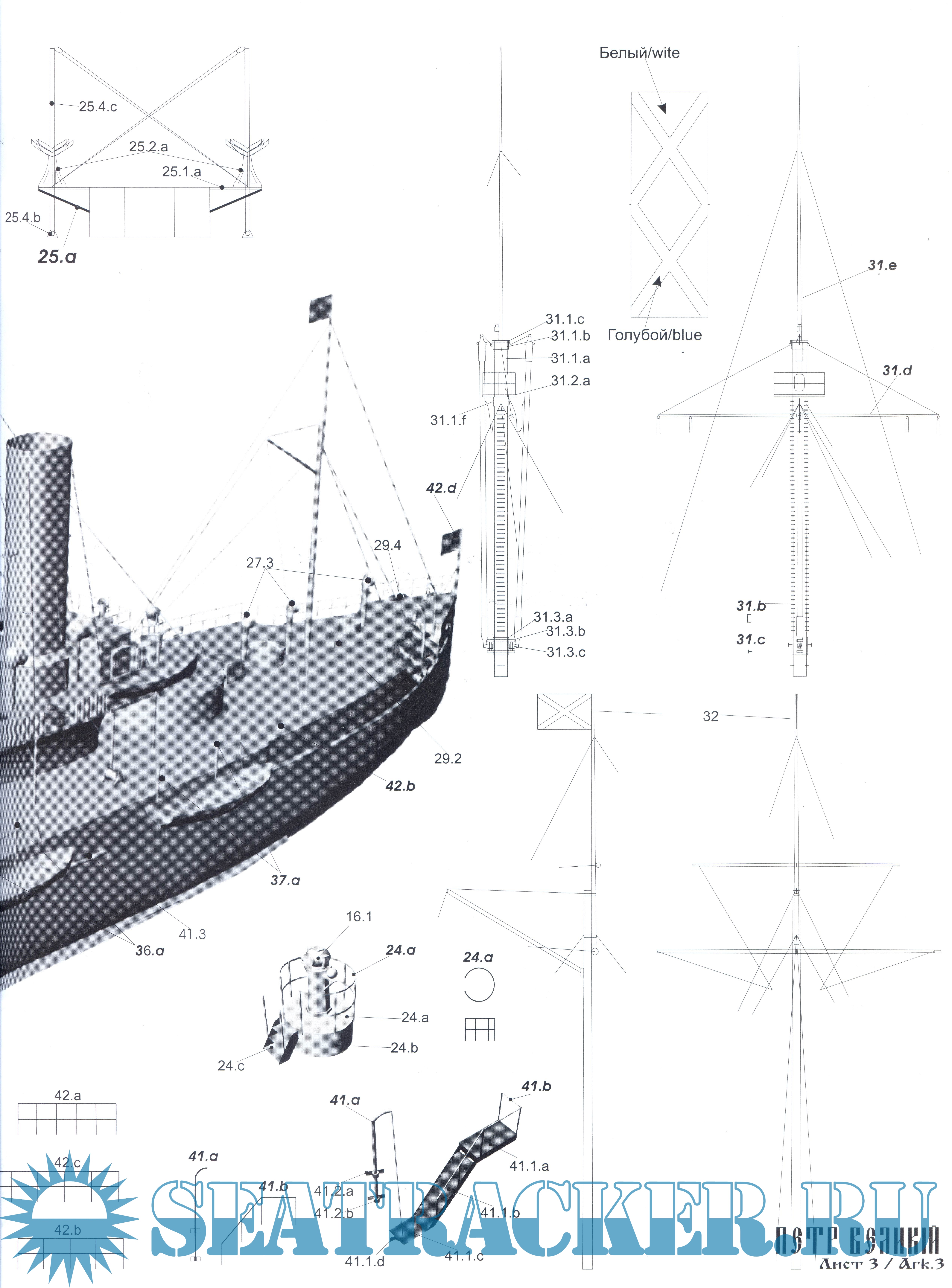 46 листов цветных выкроек и инструкций для изготовления бумажной модели броненосца "Петр Великий" Россия 1881 год в масштабе 1:200Скриншоты