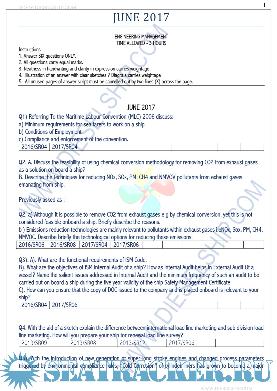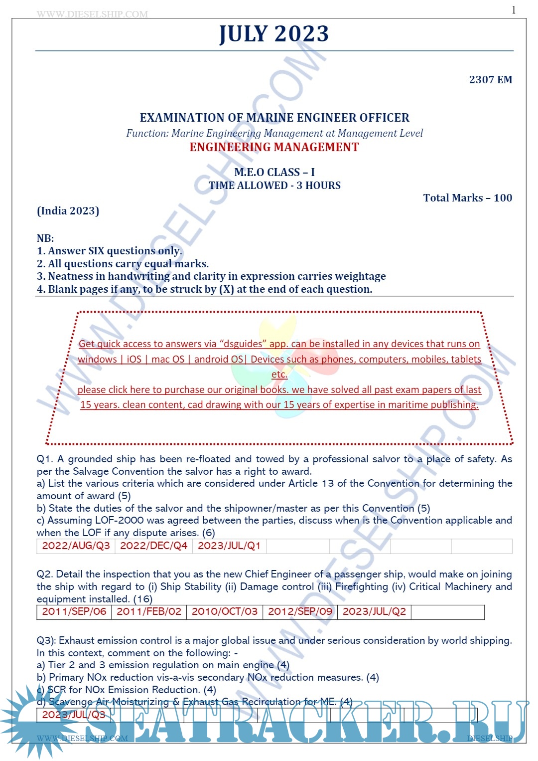Description: M.E.O. Class I Question Paper set for Mercantile Marine Department (MMD), D.G. Shipping India Exams.