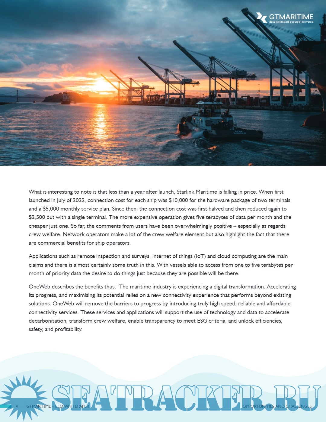 Year: 2023 Language: english Author: GT Maritime Format: PDF Quality: eBook Pages count: 9 Description: It is almost 50 years since satellite communication first came to the maritime sphere and since then there have been many developments and advances. The new generation of Low Earth Orbit (LEO) systems is looking to be another leap into the future for communications between ship and shore and they do look as if they provide a solution to some of the demands of ship operators, crews and other stakeholders. New LEO networks definitely offer a quantum leap in crew communication possibilities. Satisfying a demand that is growing and making a seafaring career more attractive than it might possibly have been otherwise. With respect to commercial communications, not being approved for GMDSS and not available globally, the new services will not satisfy mandatory maritime communication carriage and operational requirements. High speed internet and data transfer is better suited to some ships than others. Operators must decide on economic grounds what are ‘must haves’ and what are not. Communications are considered good for crew welfare but the subscribed limits of one or five terabytes could easily be exceed early if crew make maximum use of streaming services. Can the system set limits for individual users and if not, how can this be managed equitably to avoid problems among crew members.