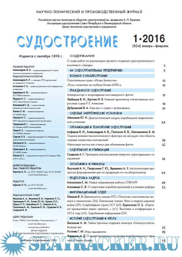 Журнал «Судостроение» №825 март-апрель - Горелов В.В. (зам. главного редактора) [2016, PDF]