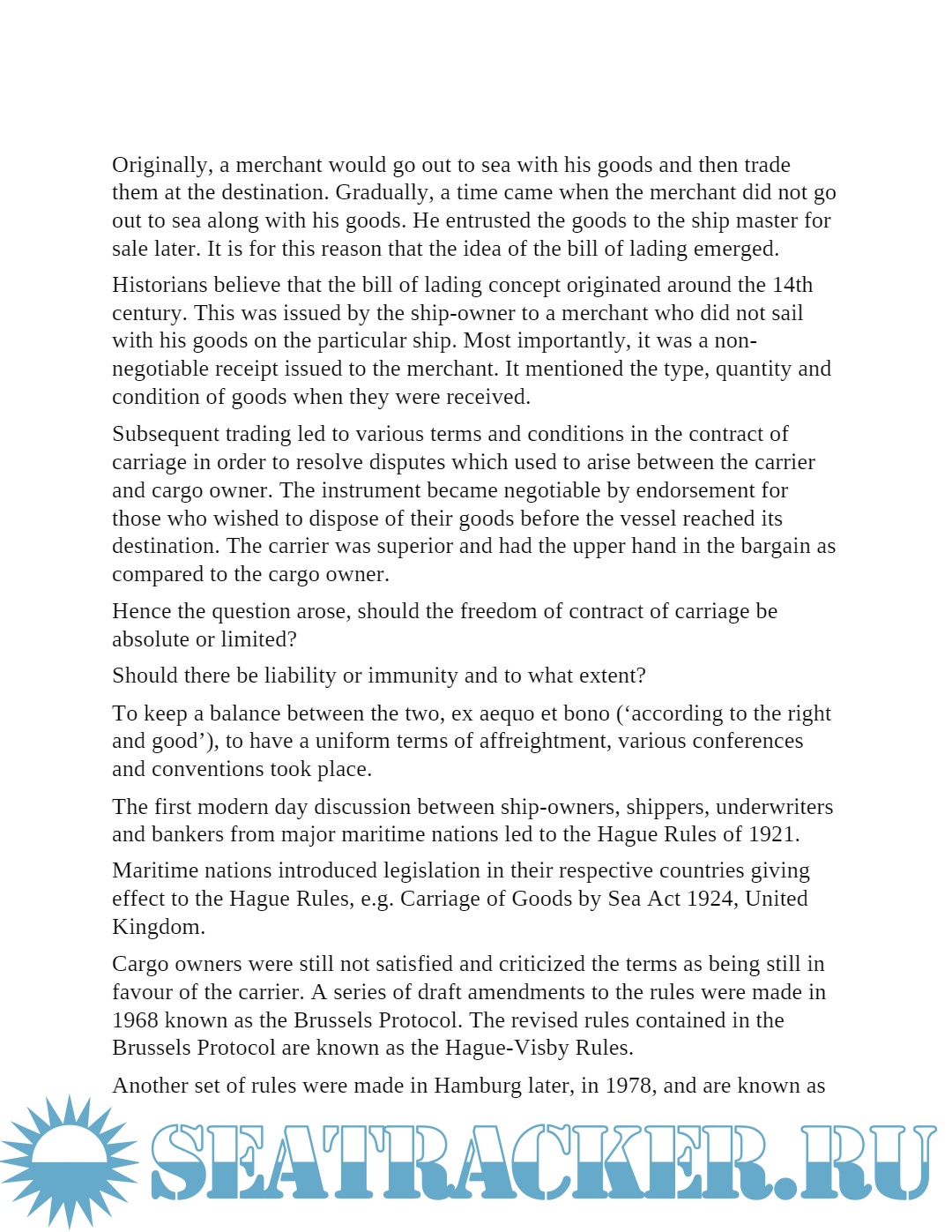 Description: This text provides for a brief history to the background of the Bill of Lading which is so crucial in today's shipping industry.