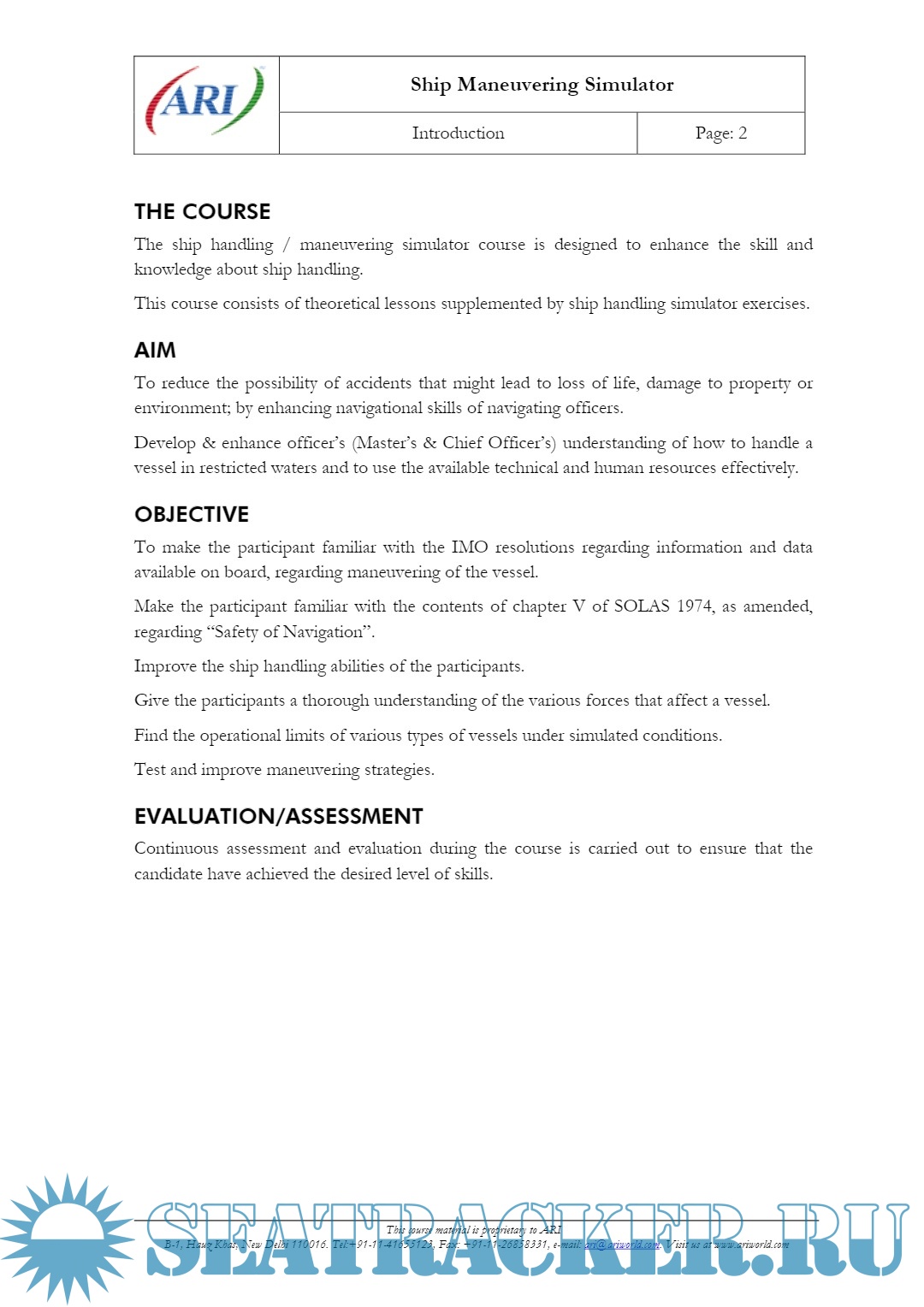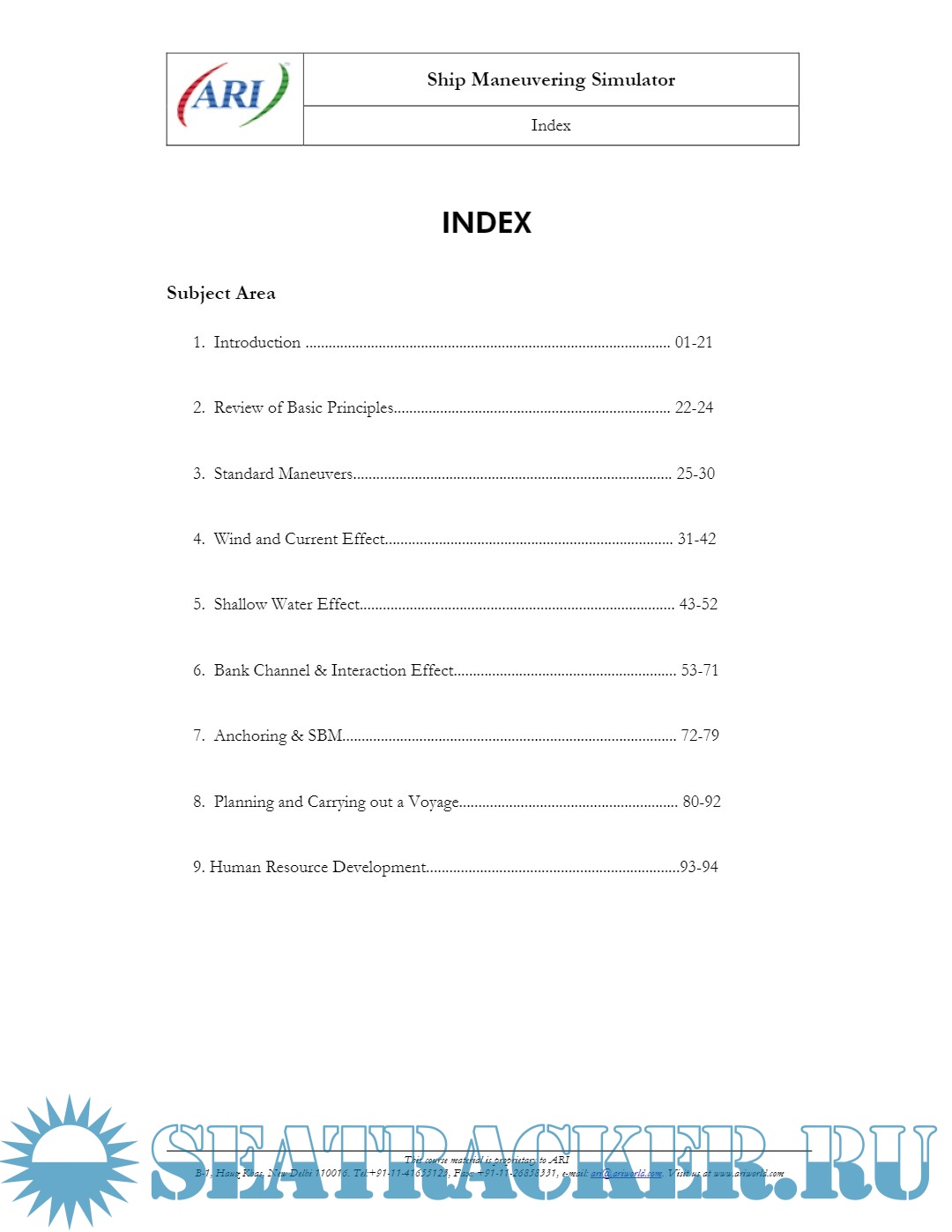 Year: 2021 Language: english Author: ARI Genre: Training courses Publisher: Applied Research International (ARI), New Delhi, India Format: PDF Quality: eBook Pages count: 119 Description: The ship handling / maneuvering simulator course is designed to enhance the skill and knowledge about ship handling. Aim: To reduce the possibility of accidents that might lead to loss of life, damage to property or environment; by enhancing navigational skills of navigating officers. Develop & enhance officer’s (Master’s & Chief Officer’s) understanding of how to handle a vessel in restricted waters and to use the available technical and human resources effectively. Objective: To make the participant familiar with the IMO resolutions regarding information and data available on board, regarding maneuvering of the vessel. Make the participant familiar with the contents of chapter V of SOLAS 1974, as amended, regarding “Safety of Navigation”. Improve the ship handling abilities of the participants. Give the participants a thorough understanding of the various forces that affect a vessel.