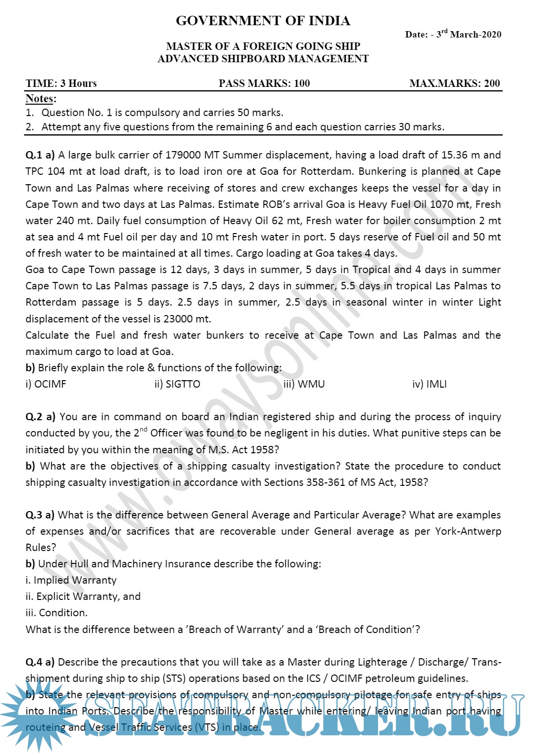 Master's examinations Question paper sets for Mercantile Marine Department (MMD), India.
