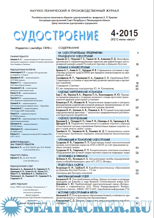 Журнал «Судостроение» №819 март-апрель - Горелов В.В. (зам. главного редактора) [2015, PDF]