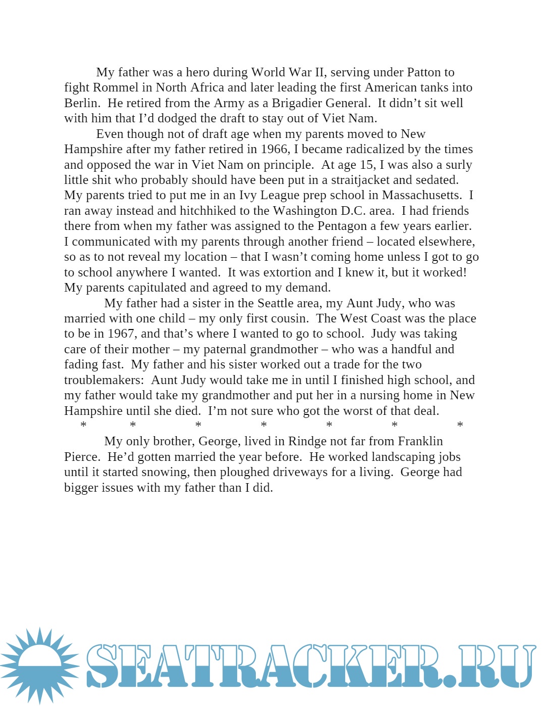 Description: This is a story of travels across America, spanning more than 10 states from Hawaii to New Hampshire, as a prodigal son returns to his New England home by hitchhiking and working on merchant ships. The tale describes his adventures along the way in the oil fields of New Mexico and on rivers, oceans and the Gulf of Mexico.