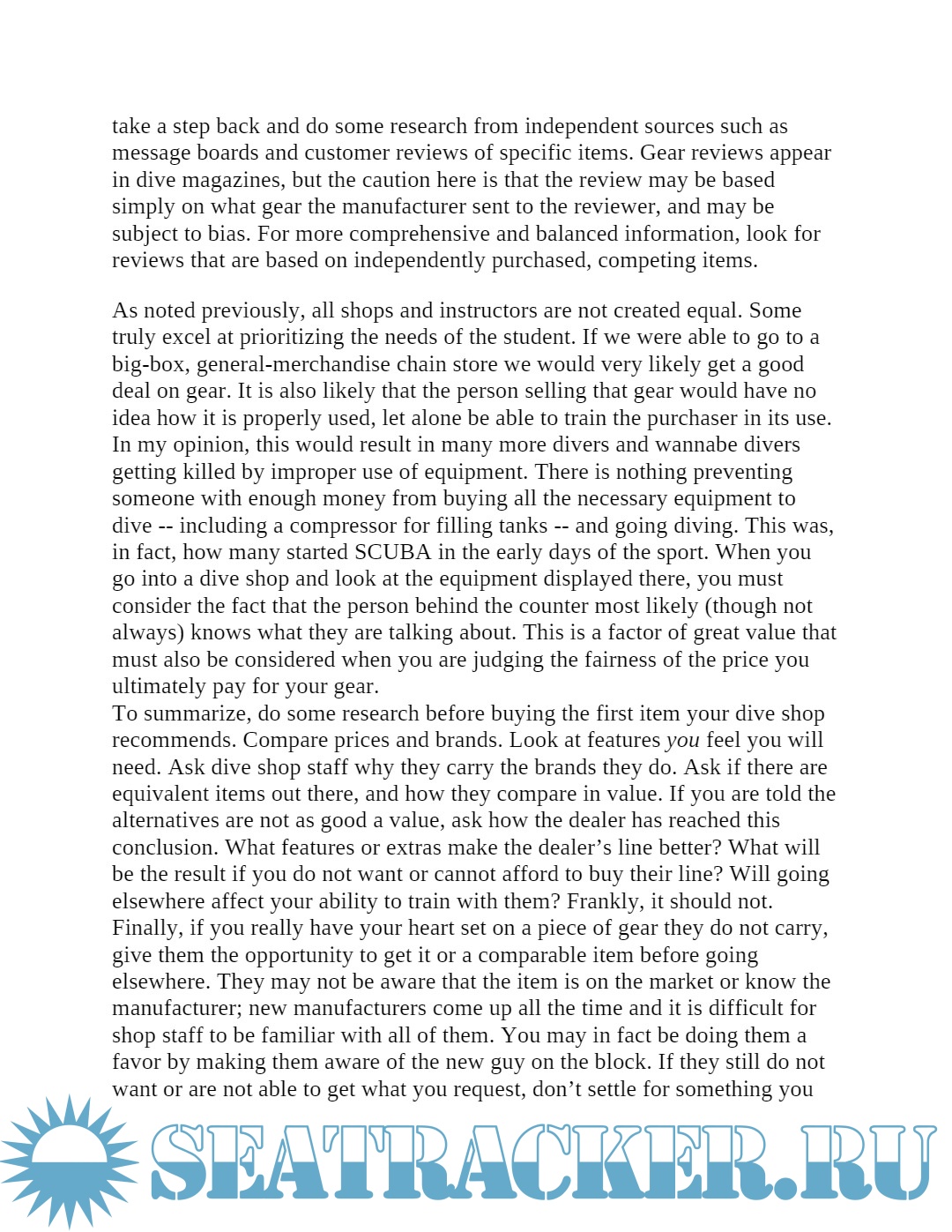 Description: SCUBA is a fun, relaxing, educational, interesting, and -- if approached properly -- safe activity, it is nonetheless a sport that has risks. SCUBA diving is in fact an extreme sport that can injure or even kill very quickly, and in some very nasty ways. What we are doing is entering an alien environment that is normally hostile to human life. We cannot breathe in water without some kind of mechanical assistance. These are facts and the details should be covered in every Open Water (OW) class. All too often in today’s society, however, people do not want to take the time to properly prepare and get the education to safely take on new tasks. Some agencies appear to have responded to this by developing training programs that turn out high numbers of certified divers in shorter time frames, necessitating the reduction of time spent on what I consider to be some necessary basic skills.