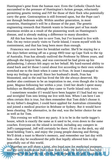 Description: On her 49th birthday, Anna Fergusson, Boston neuroscientist and dedicated introvert, arrives at an unwanted crossroads when the funding for her research lab is cut. With her confidence shattered and her future uncertain, on impulse she rents a cabin for a year on Australia's Great Barrier Reef. However Turtle Island, alive with sea birds and nesting Green turtles, is not the retreat she expected. Here she finds love—for the eccentric islanders who become her family; for Tom, the laid-back turtle whisperer; and for the turtles whose ancient mothering instincts move her to tears. But Anna finds that even on her idyllic drop in the ocean there is pain, and as the months fly past her dream for a new life is threatened by a darkness that challenges everything she has come to believe about the power of love.