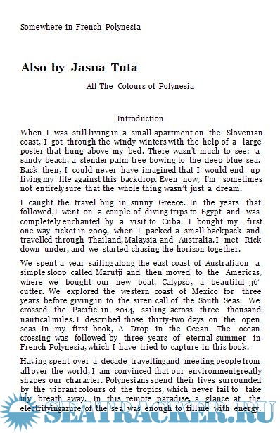 Year: 2020 Language: english Author: Jasna Tuta Edition: Kindle | 2nd Format: azw3 Quality: eBook Pages count: 104 Description: Tales of great heroism and daring at sea are all well and good. But this isn't one of them. Totally free of hyperbole and exaggeration, A Drop in the Ocean is an honest and genuine account of what it is really like to cross a very big ocean, on a very small sailboat, for the very first time…When you raise the sails and head into the unknown, you take on the most fascinating challenge of your life. But you also embark upon a voyage of an entirely different nature. As the initial fear of the unknown slowly gives way to the daily rhythm of life at sea, something entirely unexpected happens. This book is one woman's attempt to describe the nature and effect of this subtle transformation. A Drop in the Ocean is a book for anyone curious to read an honest account of how challenging, inspiring, and ultimately rewarding it can be to venture across the open water with only your vessel, experience, and wits to guide you. Along with describing the realities of exhaustion, seasickness, and bruises, Jasna also interweaves moments of magic and this why her book is so important. A Drop in the Ocean doesn't romanticize an ocean crossing but shows both its difficulty and also its enchantment. These are the pleasures of ocean sailing that can only be experienced firsthand or read about in books like Jasna's. The beauty of the ocean is not just found when the wind and waves are perfect and in the right direction, but in what the sea forces you to do when they are not. Jasna's personal realizations and her final sense of achievement are a straightforward, honest, and accurate portrayal of a first time ocean voyage. There are still places in the world that many people will never visit, like the famed islands of the South Pacific and luckily there are also still people in the world adventurous enough to travel across an ocean by sailboat to experience them firsthand and share those stories with us. Additional info: Use 'Calibre' to open .azw3 files.