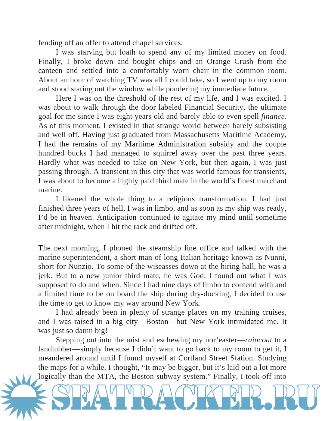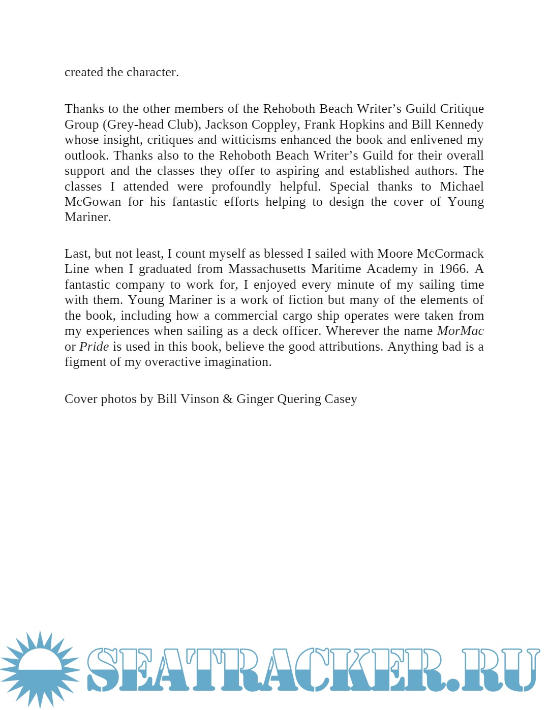 Year: 2016 Language: english Author: Walter Curran Genre: Fiction Edition: Kindle Format: PDF Quality: eBook Pages count: 179 Description: Young Mariner is a coming of age novel circa 1966. The protagonist, William Connolly is a street smart kid from South Boston evincing the intense naivete of Mitch McDeere in The Firm by John Grisham albeit in a waterfront setting. A recent graduate of Massachusetts Maritime Academy, Connolly is starting his first job as Third Mate on the cargo ship, MorMacPride. He wants to make the Merchant Marine his career, but sails into seagoing larceny as he discovers a captain and crew involved in smuggling drugs, guns and explosives. The story follows the ship's travels from New York City into U. S. East coast ports down through the East Coast of South America, racing through the Great Lakes ending in Brooklyn, NY in an unusual and violent way. Young Mariner is the first of a trilogy following the exploits of Connolly. The second takes place in south and east Africa and the third explores the Philippines, Vietnam and Thailand. Additional info: About the author: All of Walter F. Curran's stories are based on his life at sea and on the waterfront. His novels, "Young Mariner," "On to Africa," "Bombs Aweigh-On to Vietnam," and "Tramp Trader" use his background in the merchant marine for setting. Born in South Boston, Walt developed a love for all things maritime in his early teens and followed that love. Graduating from Massachusetts Maritime Academy in 1966, he sailed for four years as a Third Mate in the Merchant Marine. Coming ashore in 1970, he worked at a number of Stevedore & Marine Terminal companies in Boston, Baltimore, Philadelphia, Jacksonville and San Juan, P.R. Walt started writing poetry in 1997 after returning from Ireland and discovering blarney was an innate trait. His first book of poems "Slices of Life-Cerebral spasms of the soul" were composed for the most part riding Amtrak from New Carrollton, MD to Philadelphia. Walt is retired, residing in Ocean View DE, where he was Mayor for six years. He is a member of the Rehoboth Beach Writer's Guild (RBWG), the Eastern Shore Writer's Association (ESWA), and the Maryland Writer's Association (MWA).