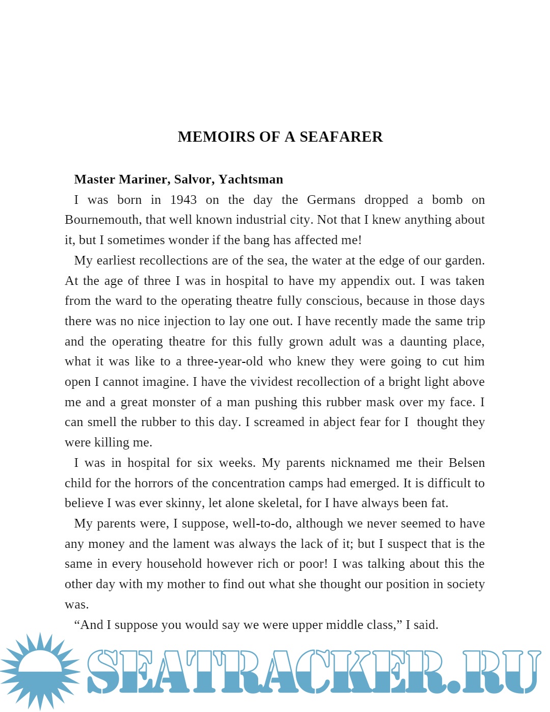Year: 2018 Language: english Author: Ian Tew Edition: Kindle Format: PDF Quality: eBook Pages count: 252 Description: ‘My living was made on the sea, my greatest pleasures have been sailing on the sea, my inspiration has come from the sea, the very reason to live has been the sea...’ By the age of seven, Ian Tew had learnt to sail and by his eighth birthday he became the owner of “Titwillow”, a yellow sailing dinghy. It marked the beginning of what was to be a life at sea. After attending the Pangbourne Nautical College, which was an ominous experience, Ian left his seafaring family to join British India Steam Navigation as a cadet. He was assigned to a ship on the East African run and then, in 1962, he flew to Bombay on his first flight as an officer in training to join the infamous deck passenger ship the ‘Dara’. The tragedy that followed was the biggest peacetime disaster to strike a British ship since the Titanic. Following survival leave, Captain Tew was sent to Calcutta, where he spent two months in hospital drifting in and out of a coma from fever. An East African voyage was next and it would be two years before a return to England was on the horizon. As a young officer in the British Merchant Navy, Ian progressed in his career and went on to become a prominent Salvage Master - joining Selco Salvage of Singapore in 1974. He navigated the busy waters of the Middle and Far East, salved vessels from the shores of the UK to the Japanese Coast, was arrested in Massawa Ethiopia during the war with Eritrea, culminating with the Iran Iraq War. Ian Tew’s story, recounted while stranded in Tahiti, provides a fascinating insight into a life of voyage and discovery, of expert seamanship, salvage and courage. Life may often be dangerous at sea, but it is seldom dull.