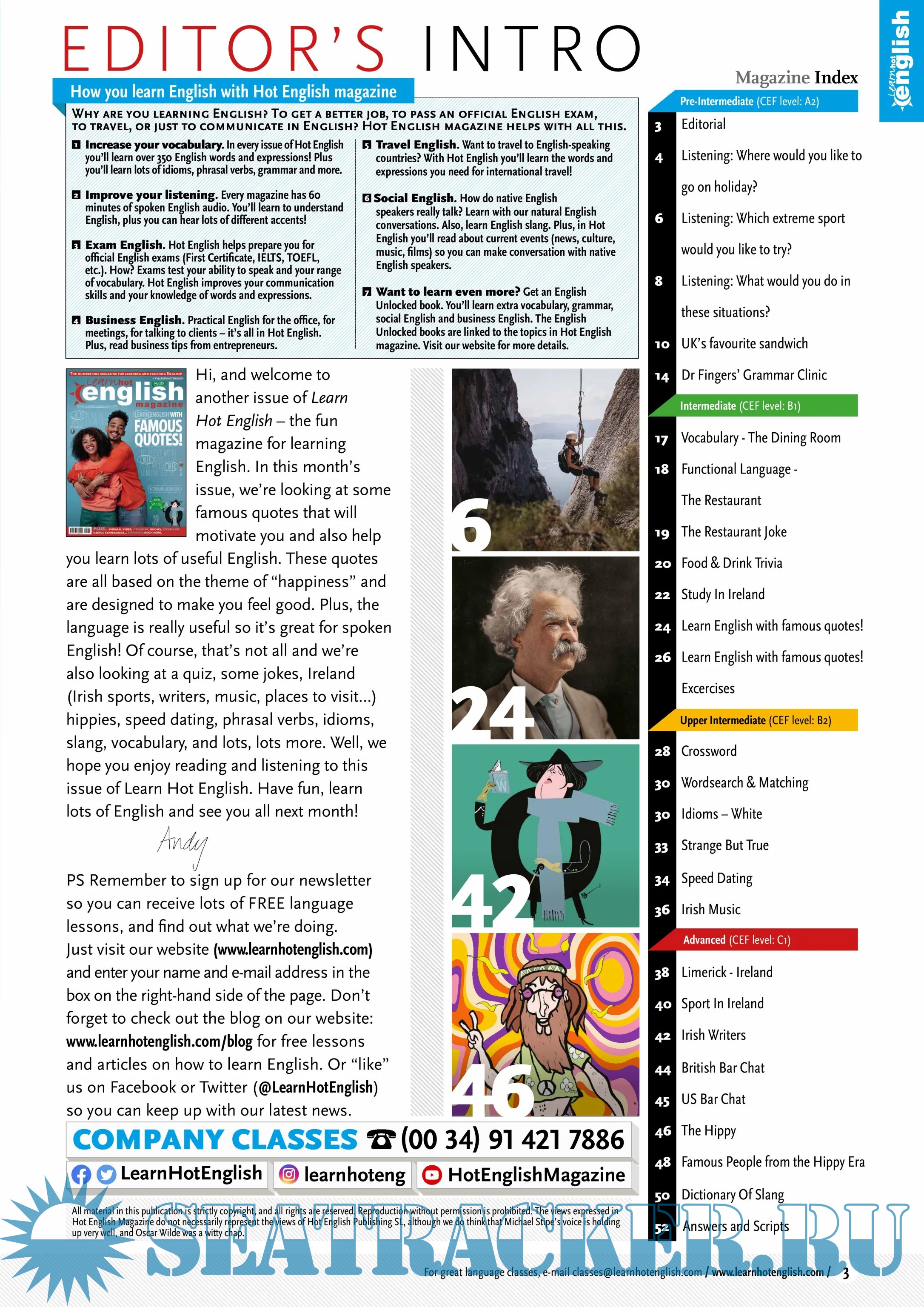 Description: Great news! The latest issue of Hot English (255) is out now! This month: 26 famous quotes to help you learn English! Plus much more...