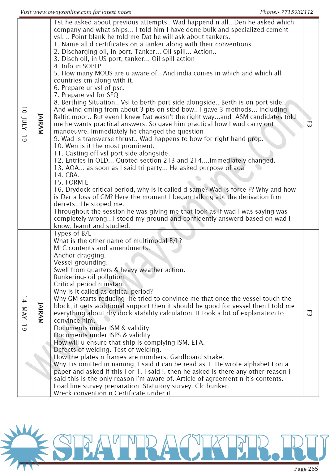 Description: Orals Question Bank for Chief Mate F.G. Mercantile Marine Department (MMD), India Examinations.