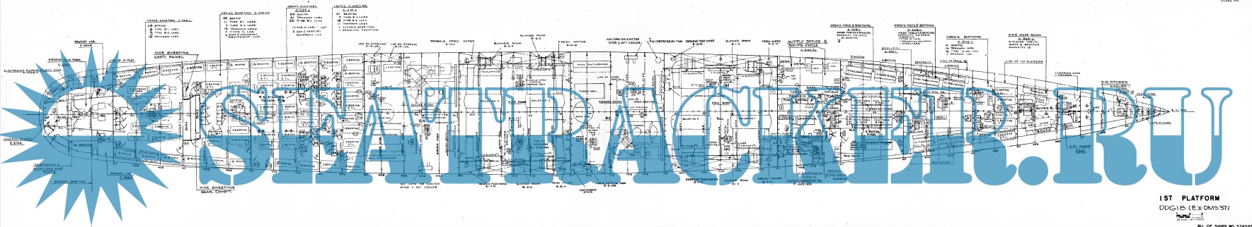 Архивные чертежи эсминца США DD-618-DMS37 - USS "Davison" (Benson Class) 1950 год