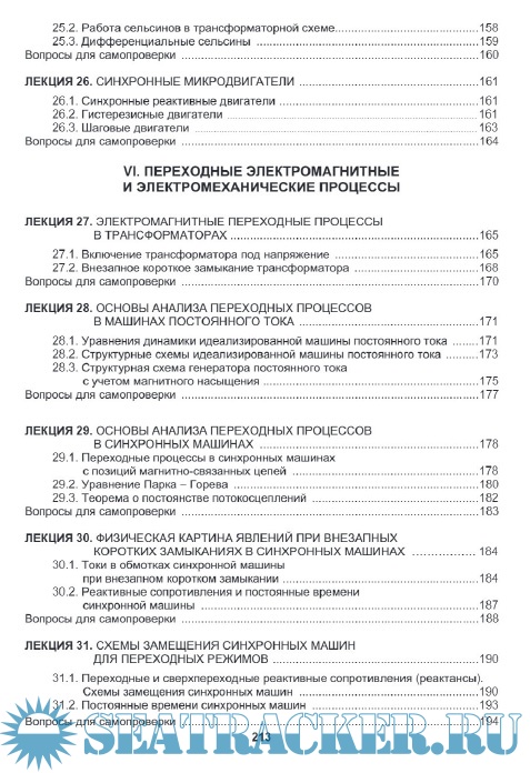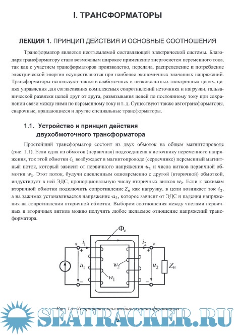 Дан подробный вывод уравнений равновесия напряжений приведенного трансформатора, показаны наиболее часто применяемые схемы замещения. Рассмотрены вопросы работы трансформаторов в трехфазных электрических сетях, включая несимметричные режимы. Охарактеризованы особенности одно- и трехфазных автотрансформаторов, а также сварочных трансформаторов.