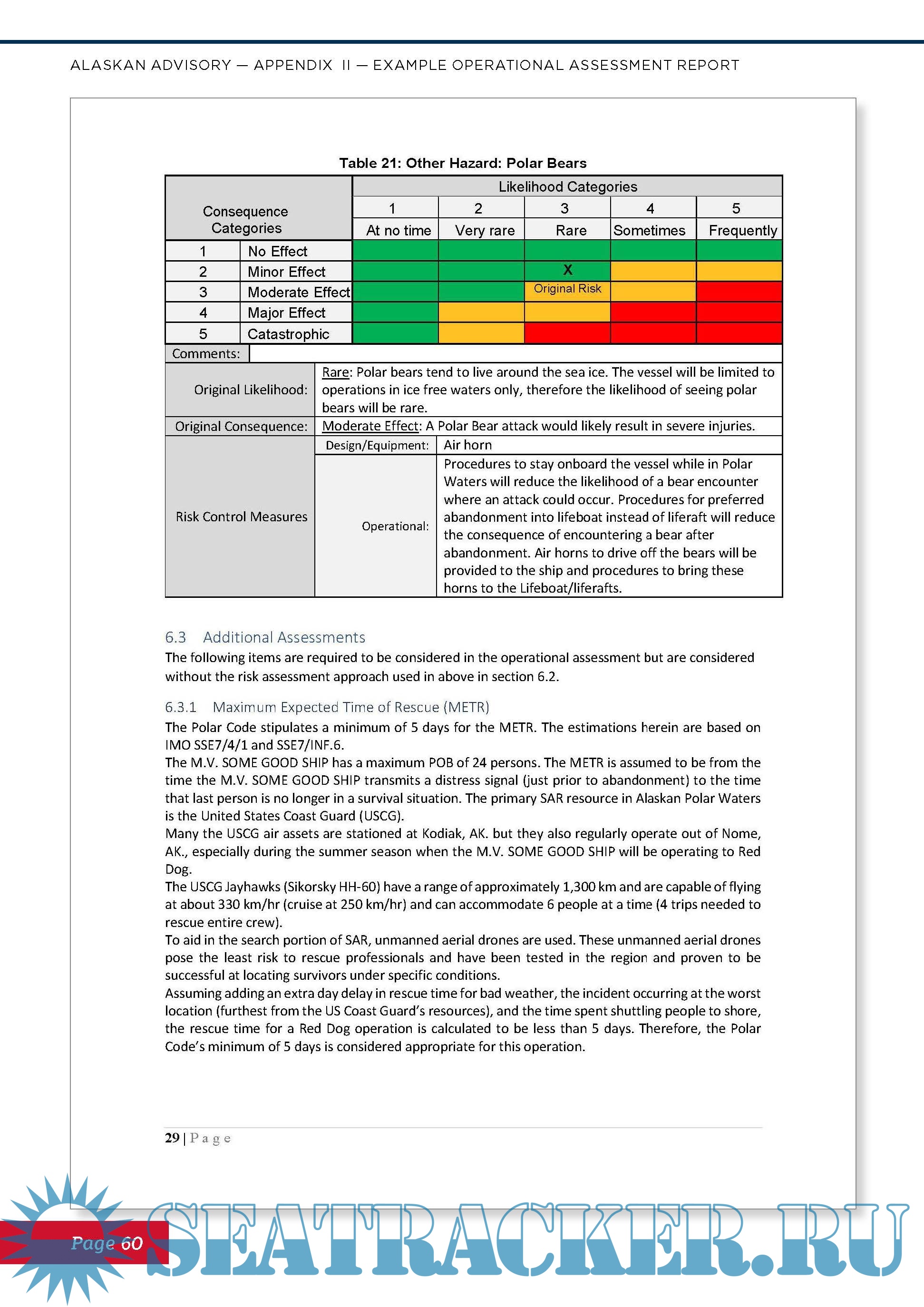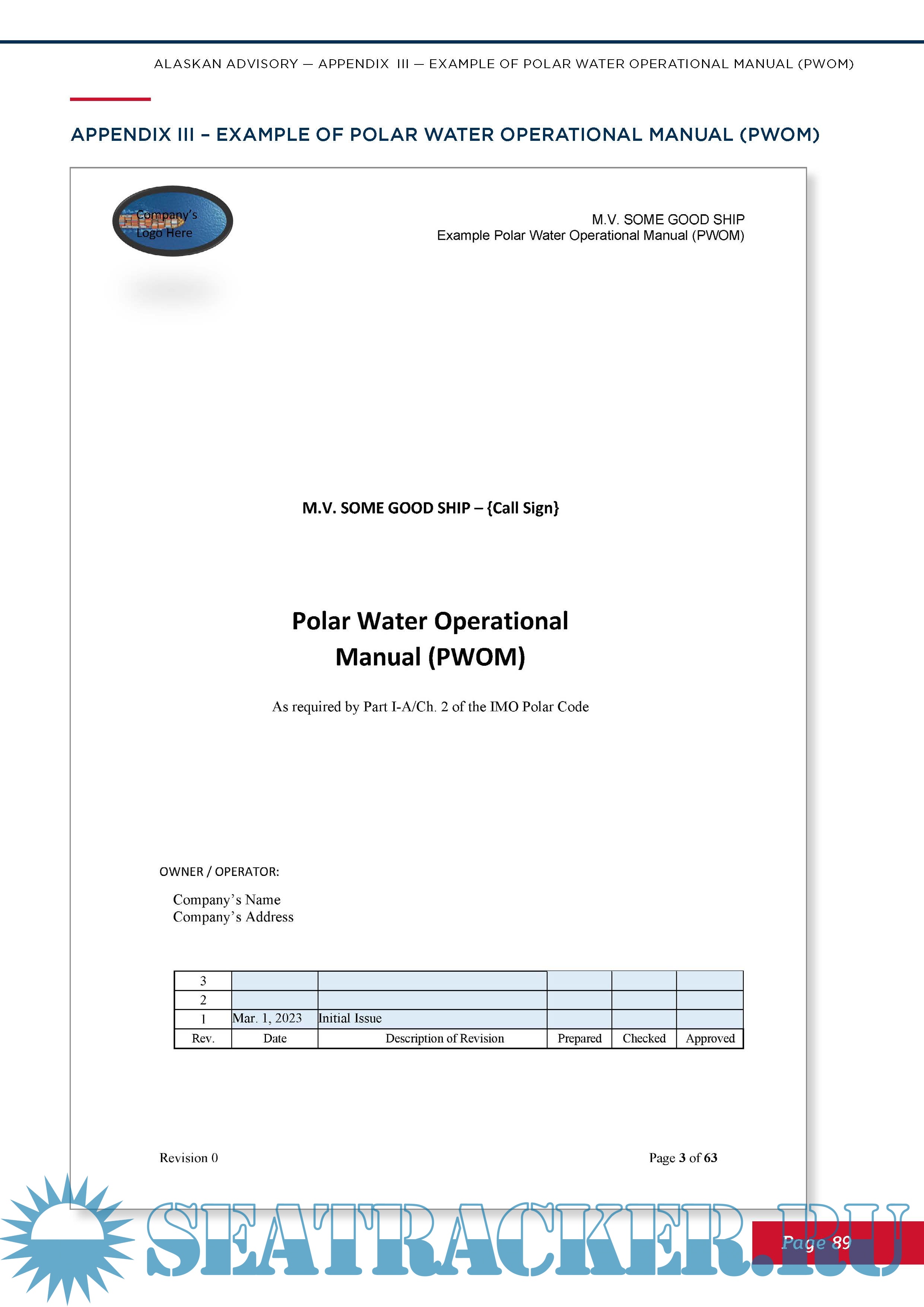 Description: This Advisory is only applicable for operations in polar waters around Alaska (north of 60° N) in areas defined by