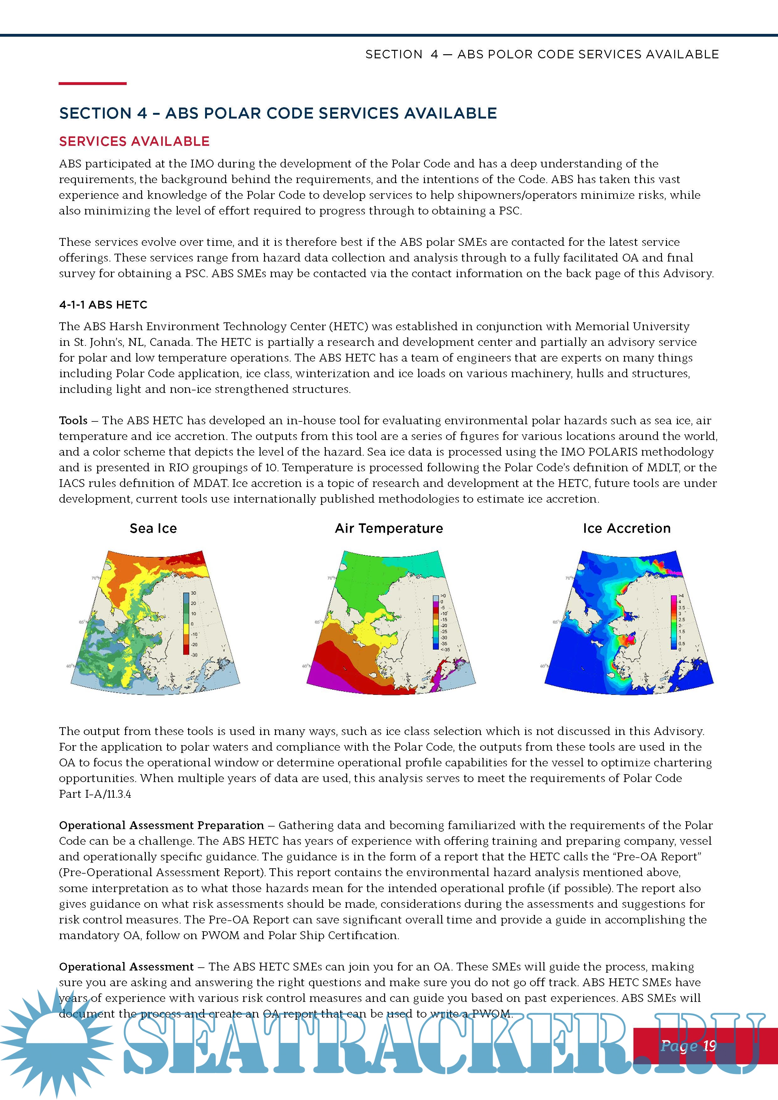 the IMO Polar Code. The contents of this Advisory are oriented towards operations with SOLAS certified cargo ships